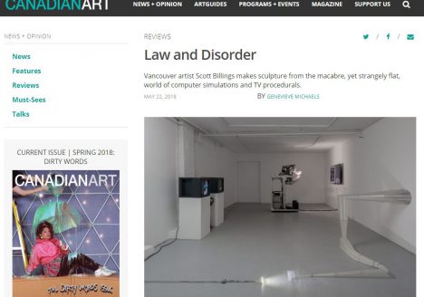 Scott Billings in Canadian Art: Law and Disorder