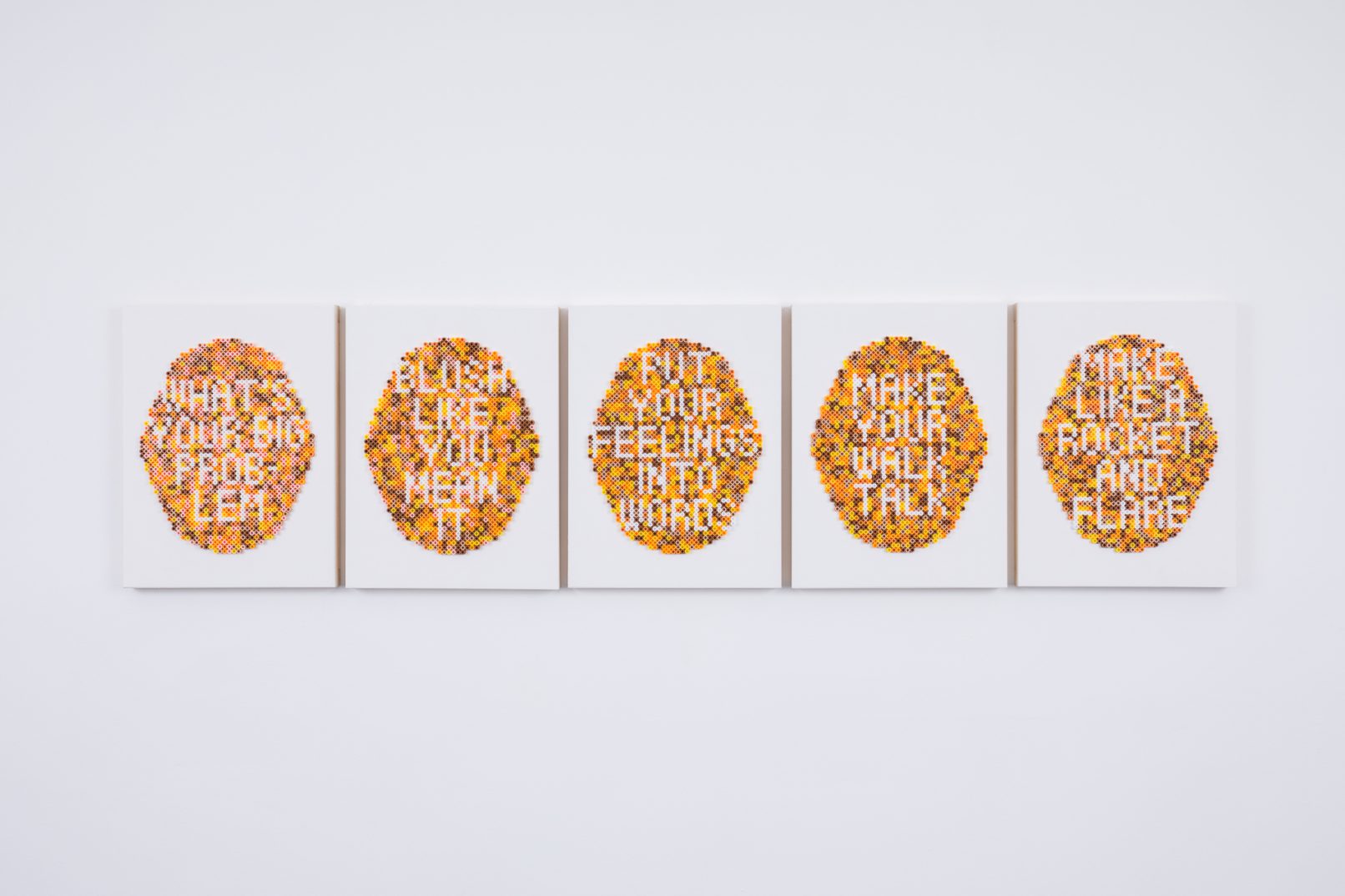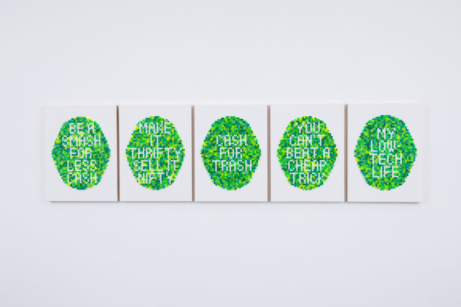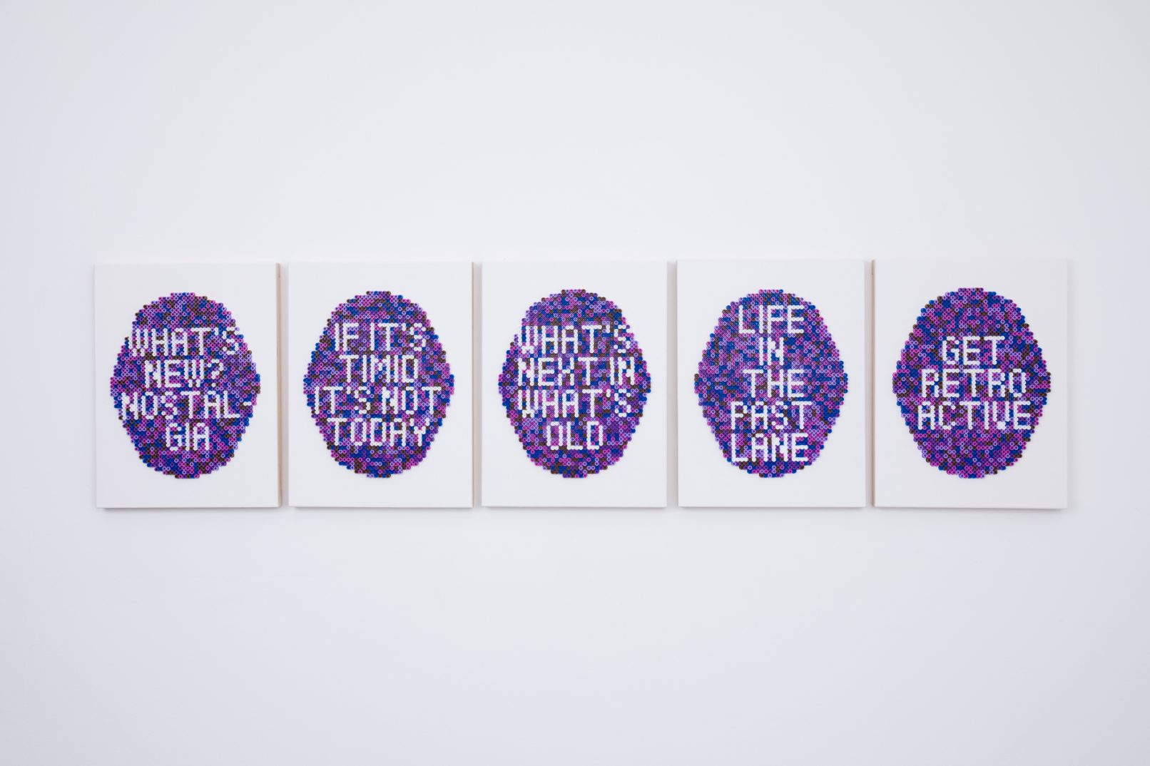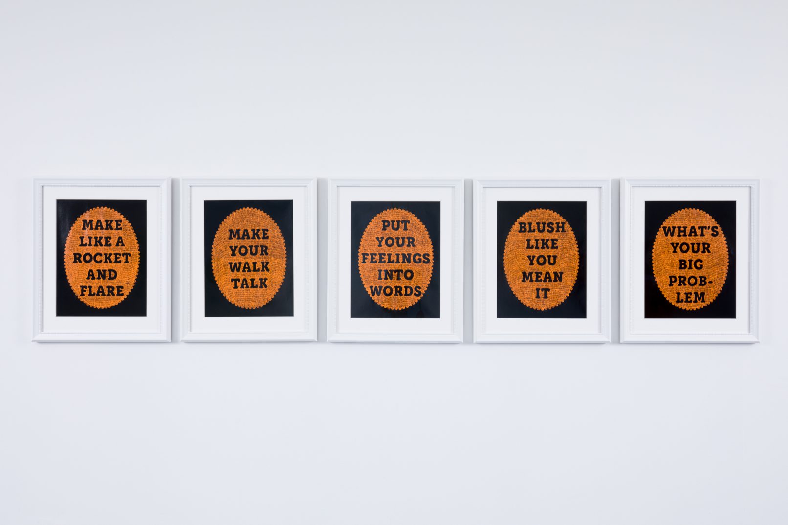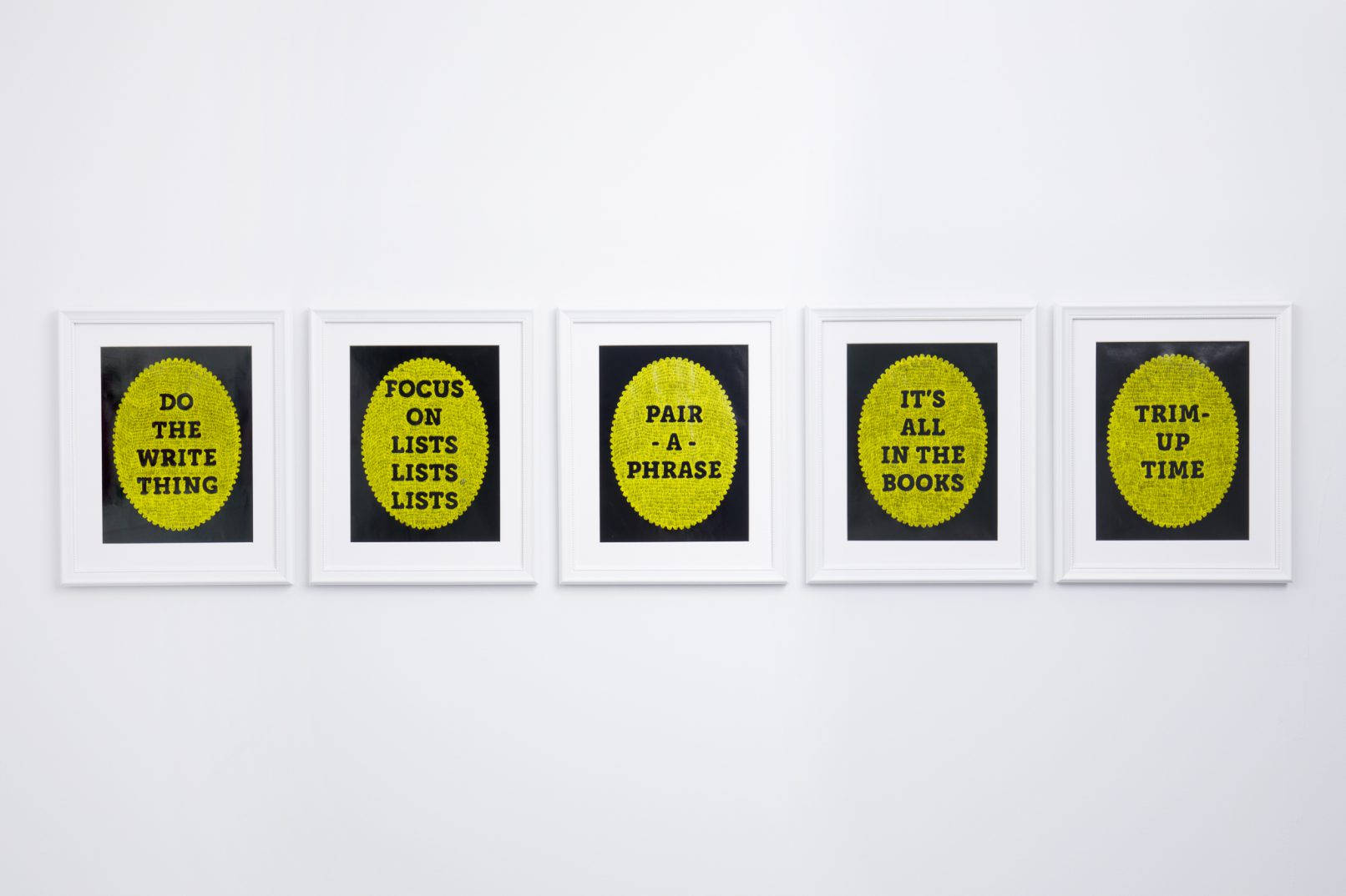 Reading through the back issues of the 1970s, 1980s and 1990s, Austin extracts editorial and advertising copy to use as fodder for a series of text based works utilizing kids craft materials and methods. Through a process of data mining and editing, Austin whittles the headlines and ad slogans ripped from these pages into motivational and aspirational maxims.