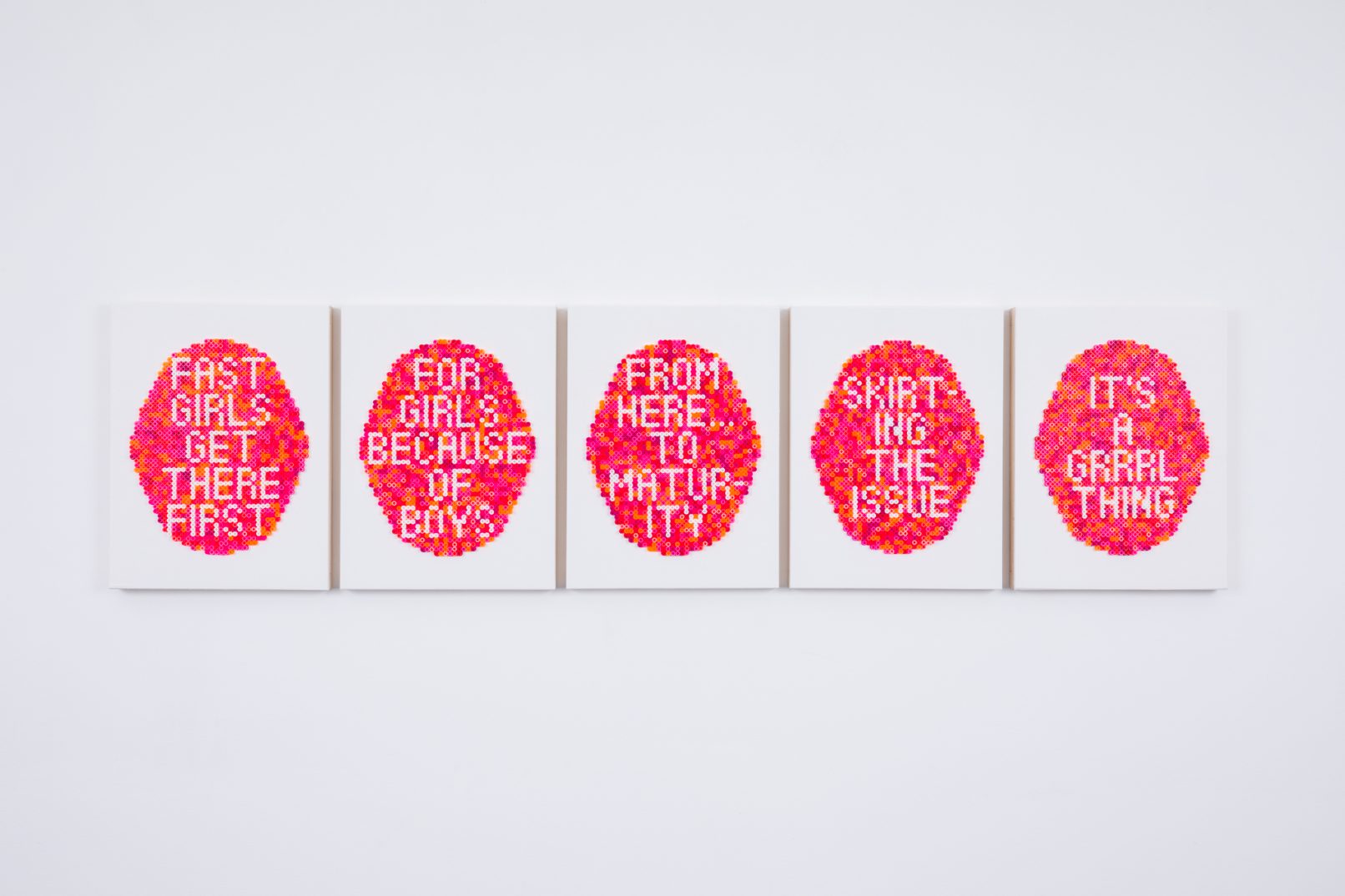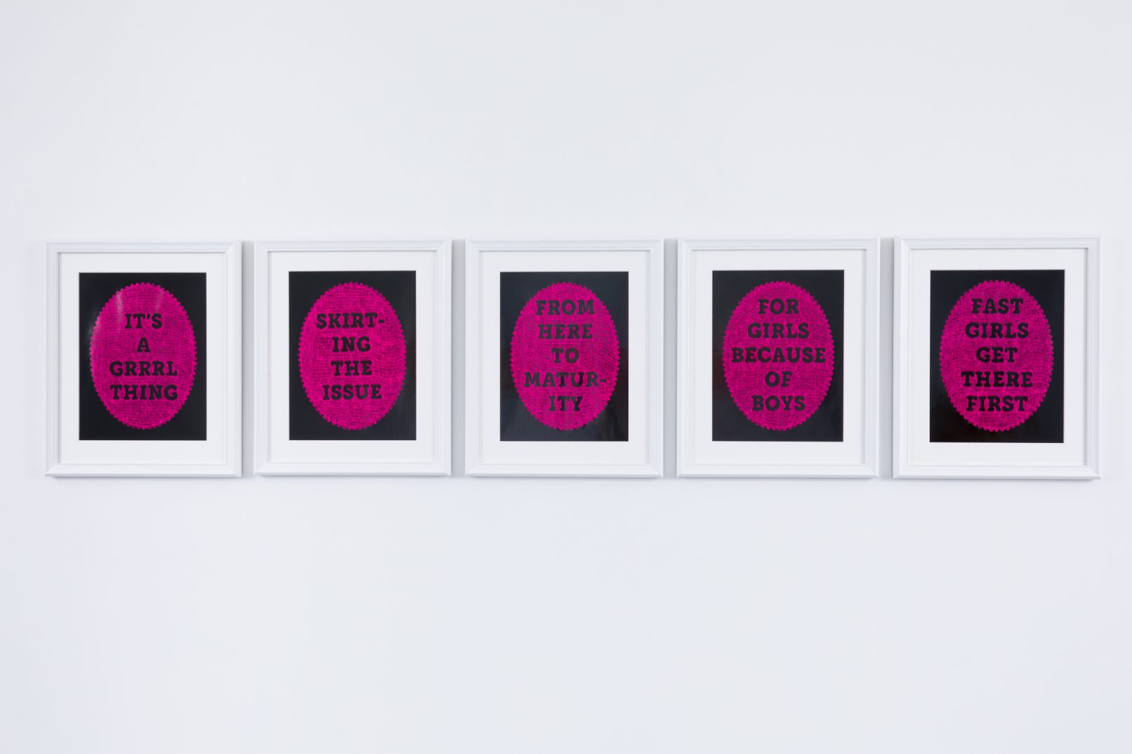 Fast Girls Get There First, an exhibition of new works by Vancouver based KIM KENNEDY AUSTIN, takes as its point of departure the American teen magazine, Seventeen. In its infancy in 1944, Seventeen Magazine was geared towards inspiring the newly formed teen demographic into becoming model workers and citizens, while promoting self-confidence in young women. Through the rose-tinted lens of Bildungsroman – a coming-of age-story – Seventeen Magazine unfolds as a guidebook or instructional manual for the process of development and growth to maturity.