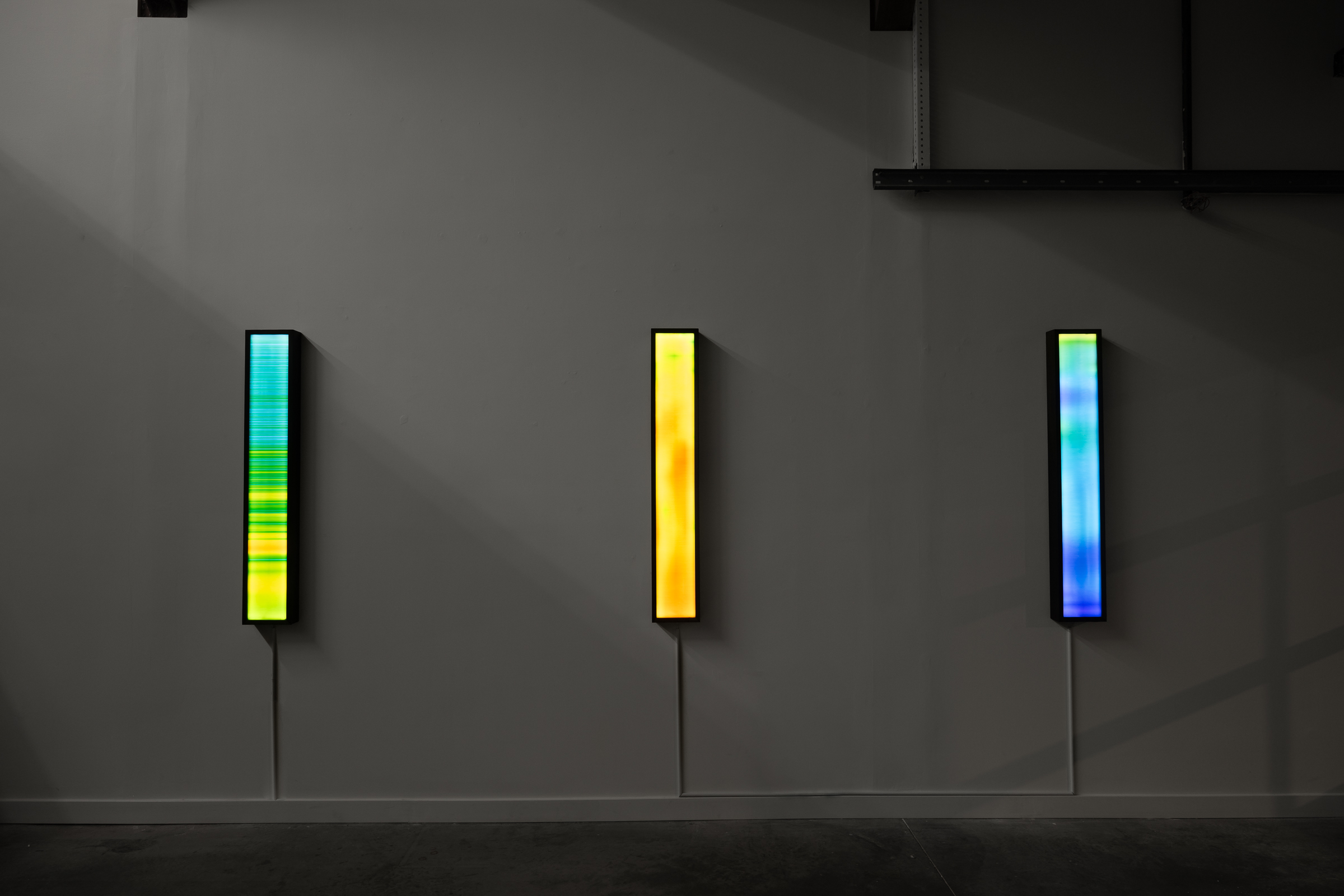 Campbell’s Breath Portraits translate the transient idiosyncrasies of breath into glowing abstract images. Using recordings from his ongoing Black Breath Archive, the images capture one tenth to one hundredth of a second of breath, freezing the briefest moment of life’s ongoing and most essential process. Here Campbell presents part of the original set of Breath Portraits, featuring friends, colleagues and senior members of British Columbia’s Black community.