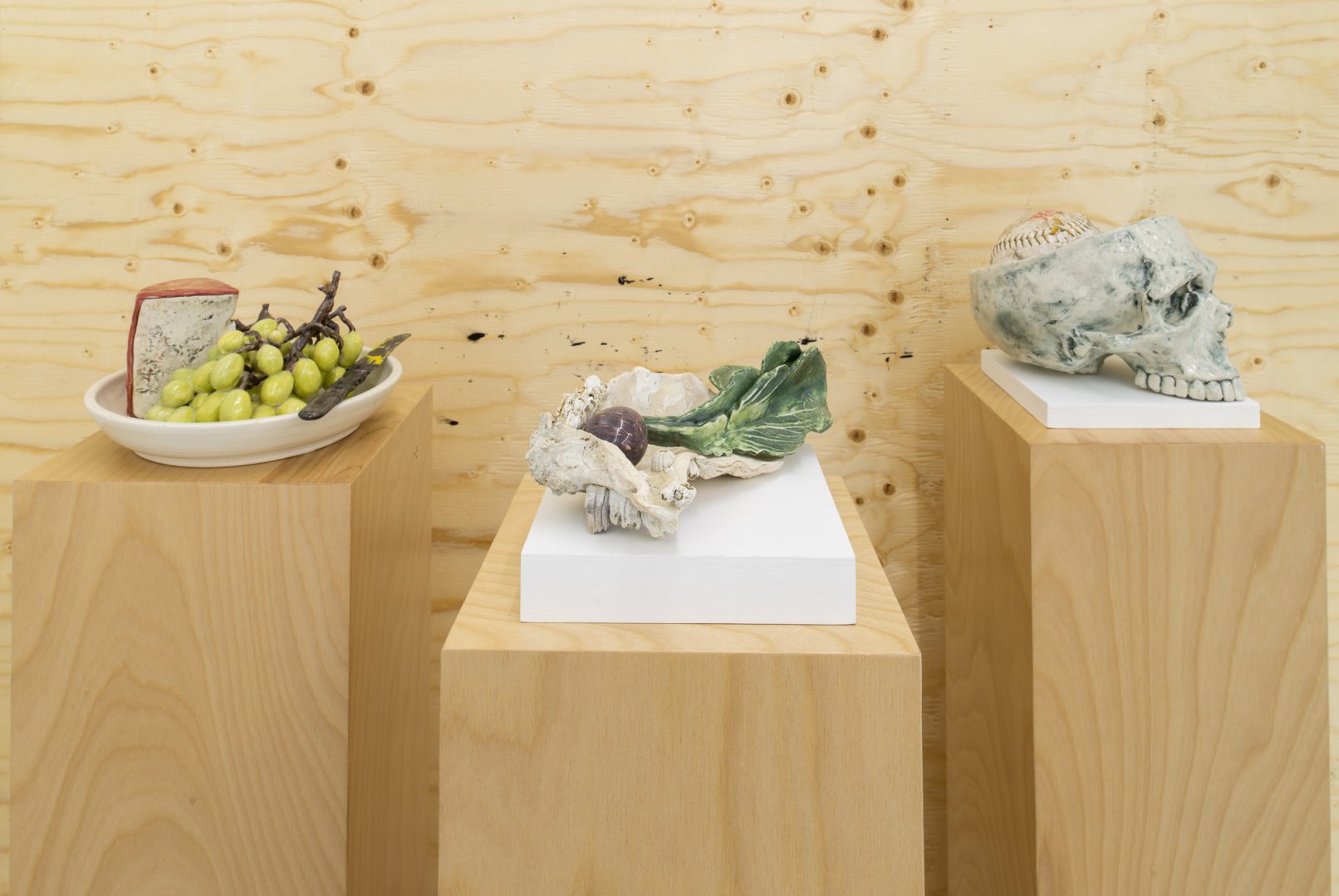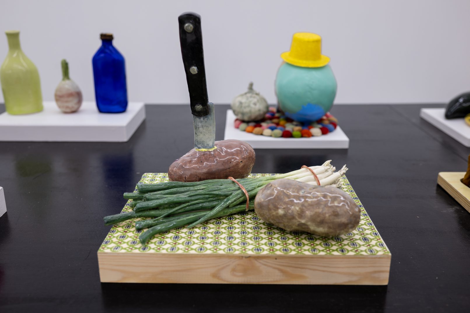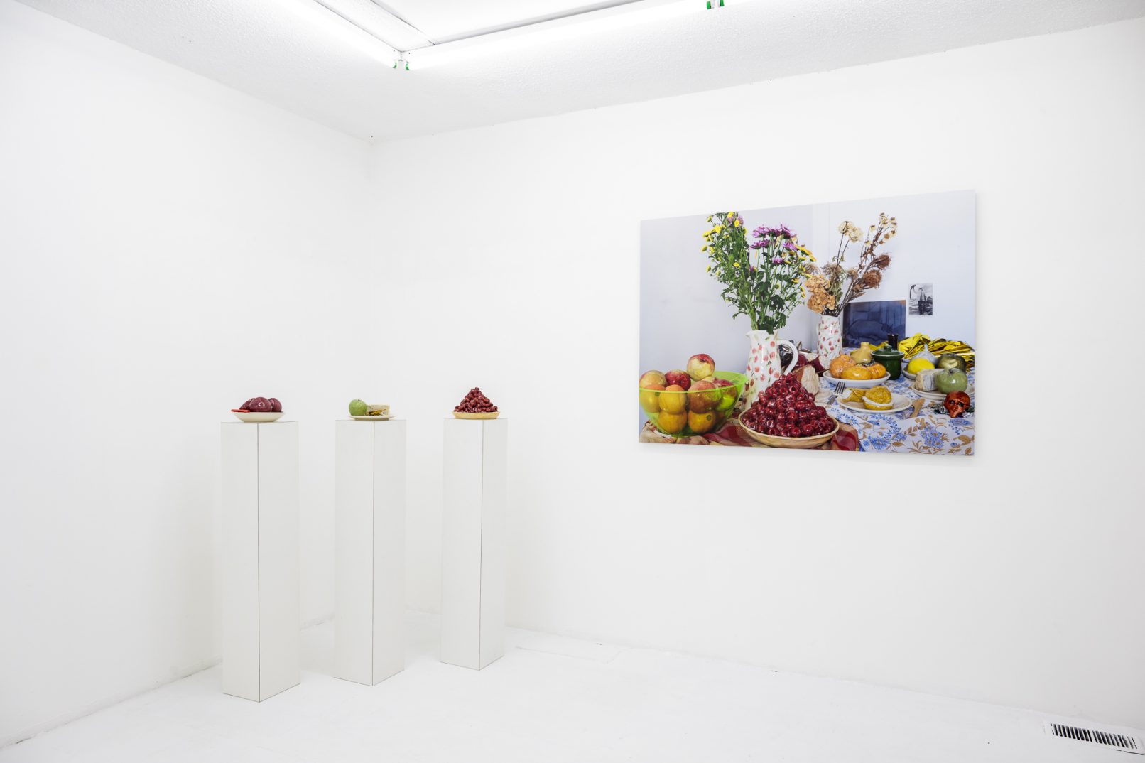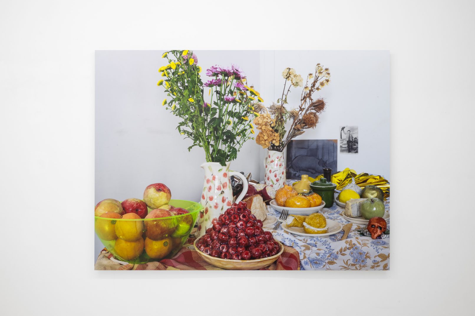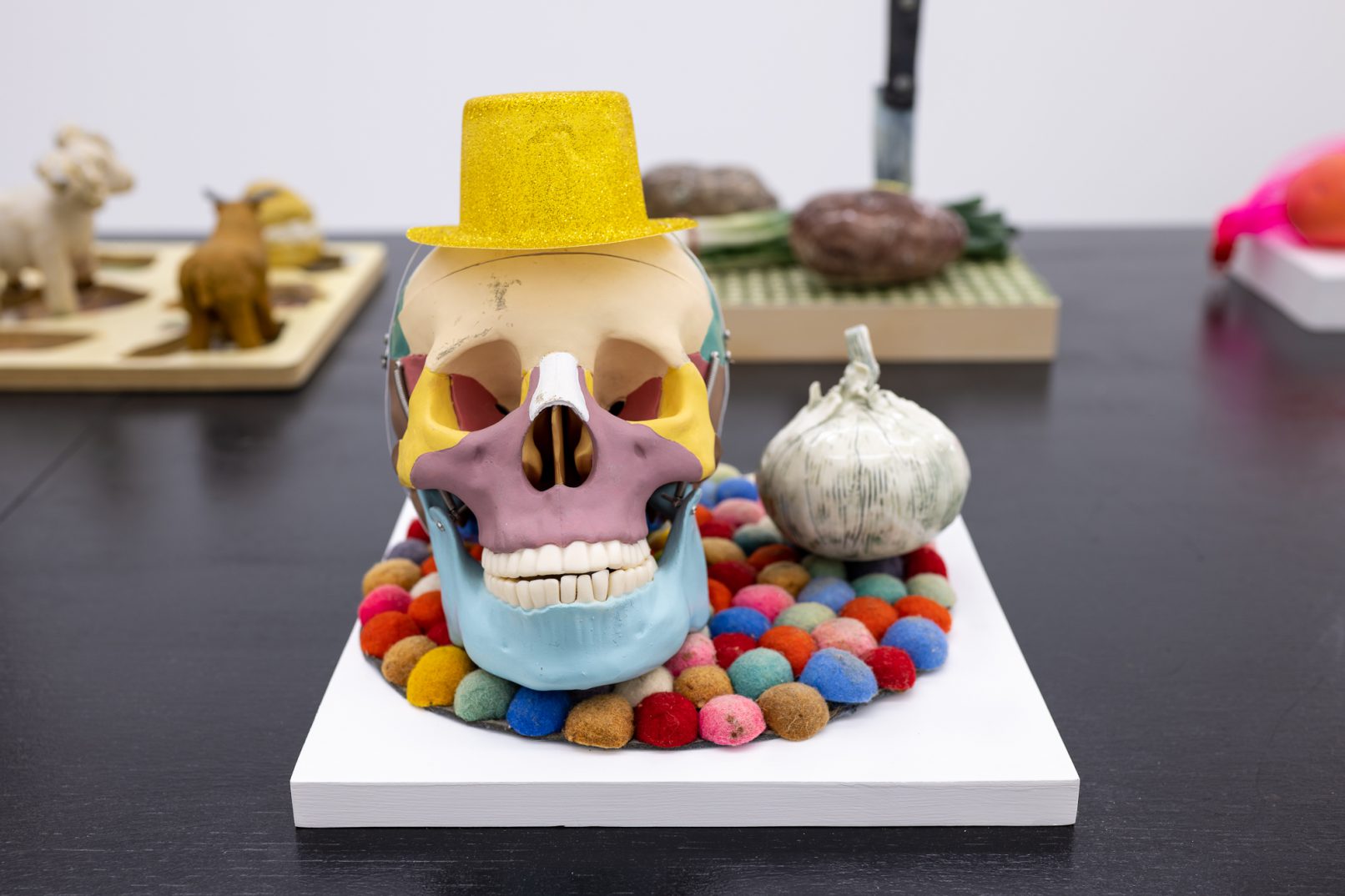 “My practice from 1961 to 2023 – 63 years – has involved a broad palette of materials and forms. In this present exhibition I was interested in using a painting genre – still life or nature morte – but making objects in ceramics along with found things, and presenting them in still life as photographs. They involved research, combining historical information, drawing on famous still life paintings by European artists of the 17th century, as well as by the modern painters, such as Paul Cézanne, but reflecting the realities of contemporary art and the present historical moment. Holbein’s Renaissance painting, The Ambassadors, a portrait of two men within a still life painting who were reputed to be lovers or “married”, carries a number of secrets and messages within the assemblage of objects. Cézanne and Morandi kept a collection of pottery, skulls, small sculptures, furniture, and other objects as “props” that they used repeatedly in their still life paintings, providing a physical vocabulary to construct narratives. I liked this as an exploration of techne in contemporary life by creating, in addition to the photographs, small still life using the same “props” or objects. I have worked on this project, that was supported by a Canada Council grant, for almost three years now.”