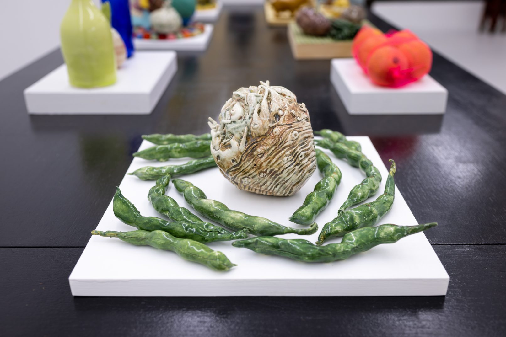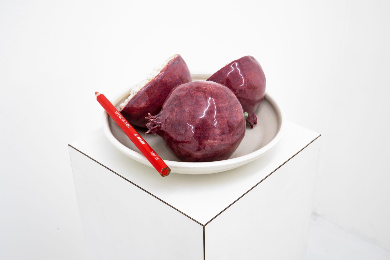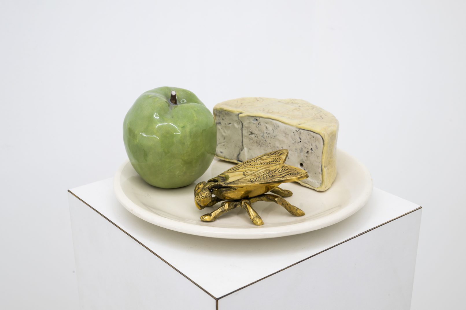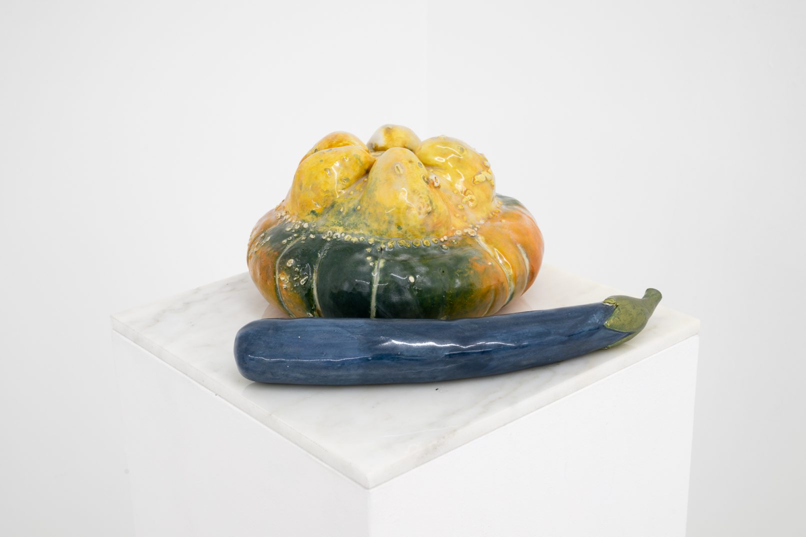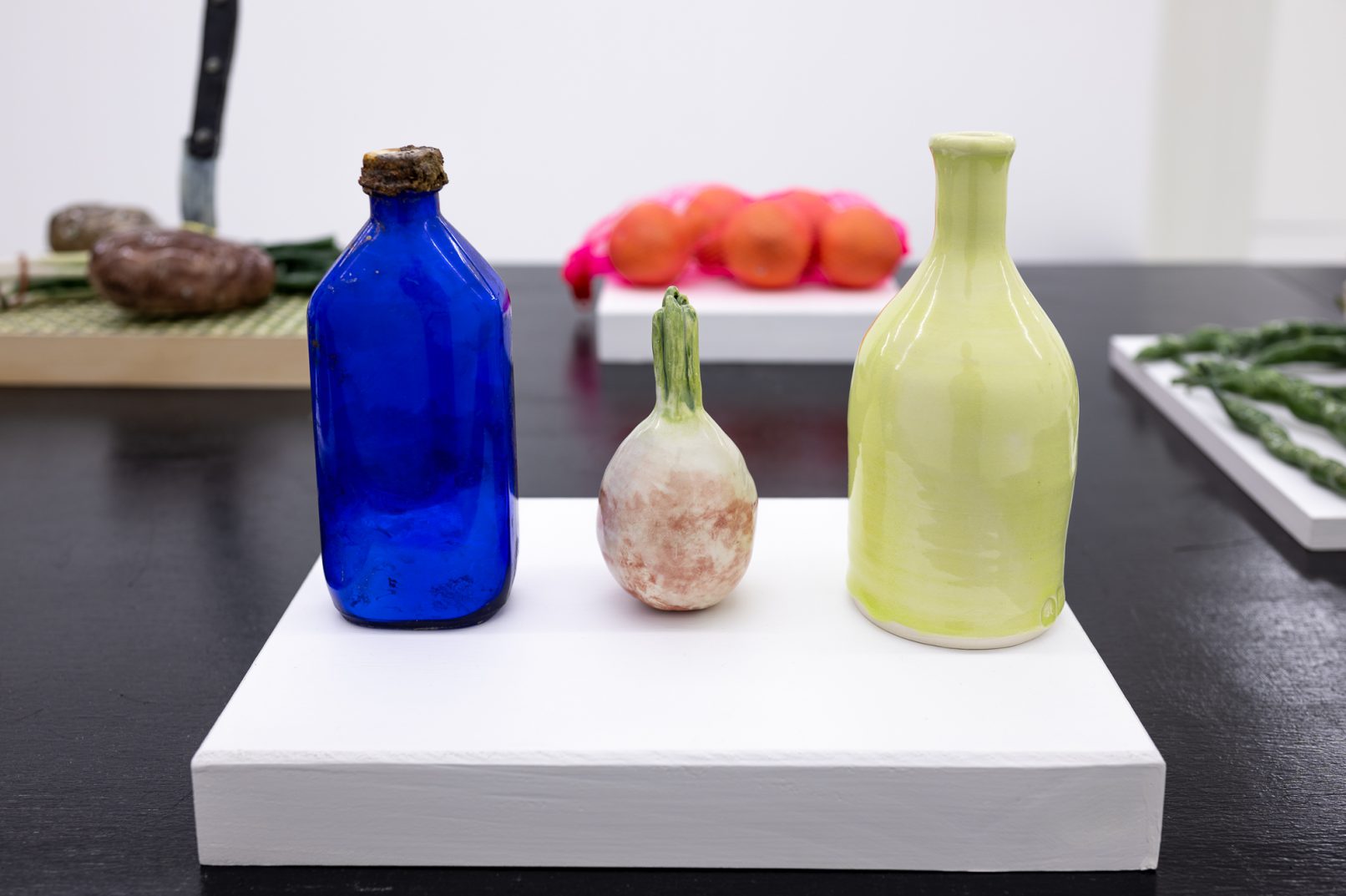 “My practice from 1961 to 2023 – 63 years – has involved a broad palette of materials and forms. In this present exhibition I was interested in using a painting genre – still life or nature morte – but making objects in ceramics along with found things, and presenting them in still life as photographs. They involved research, combining historical information, drawing on famous still life paintings by European artists of the 17th century, as well as by the modern painters, such as Paul Cézanne, but reflecting the realities of contemporary art and the present historical moment. Holbein’s Renaissance painting, The Ambassadors, a portrait of two men within a still life painting who were reputed to be lovers or “married”, carries a number of secrets and messages within the assemblage of objects. Cézanne and Morandi kept a collection of pottery, skulls, small sculptures, furniture, and other objects as “props” that they used repeatedly in their still life paintings, providing a physical vocabulary to construct narratives. I liked this as an exploration of techne in contemporary life by creating, in addition to the photographs, small still life using the same “props” or objects. I have worked on this project, that was supported by a Canada Council grant, for almost three years now.”