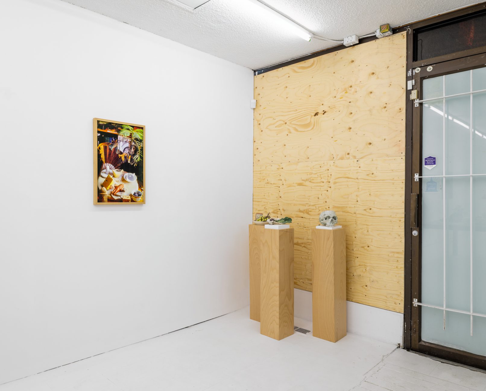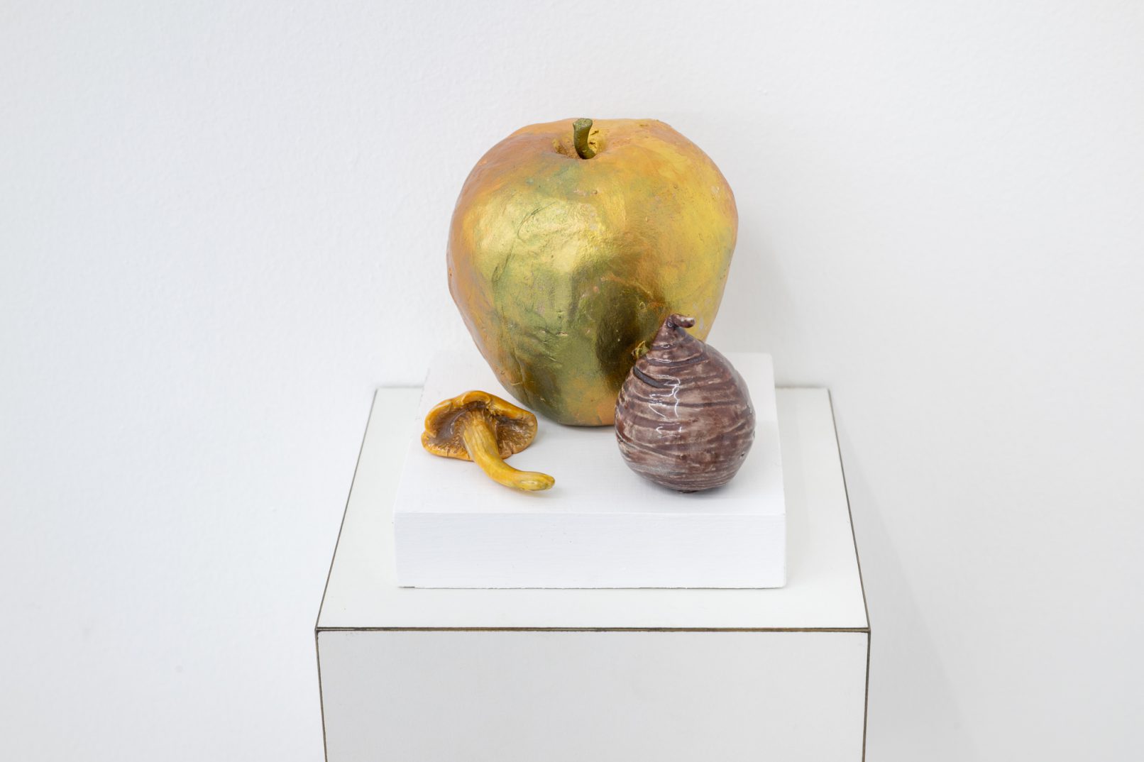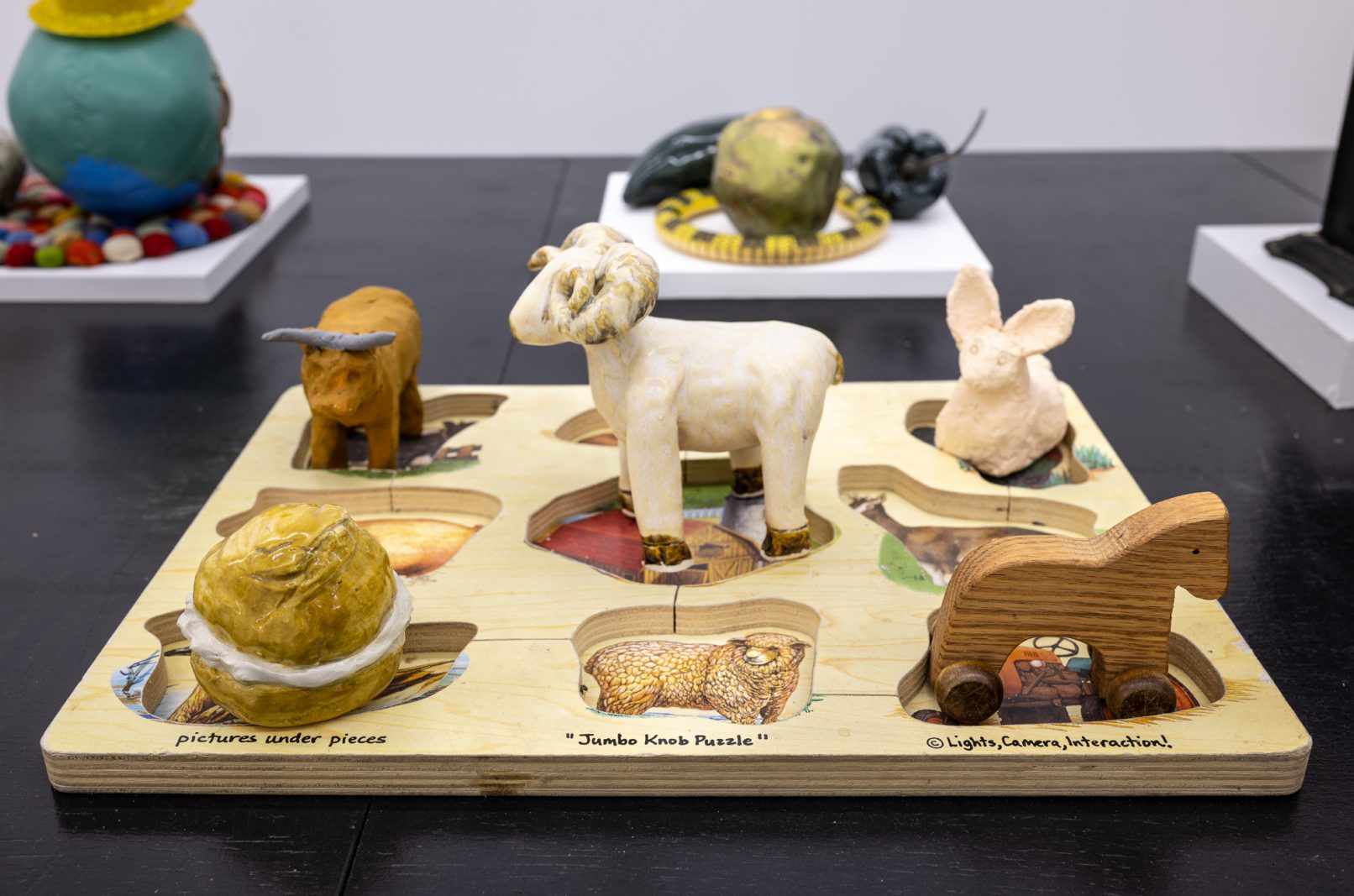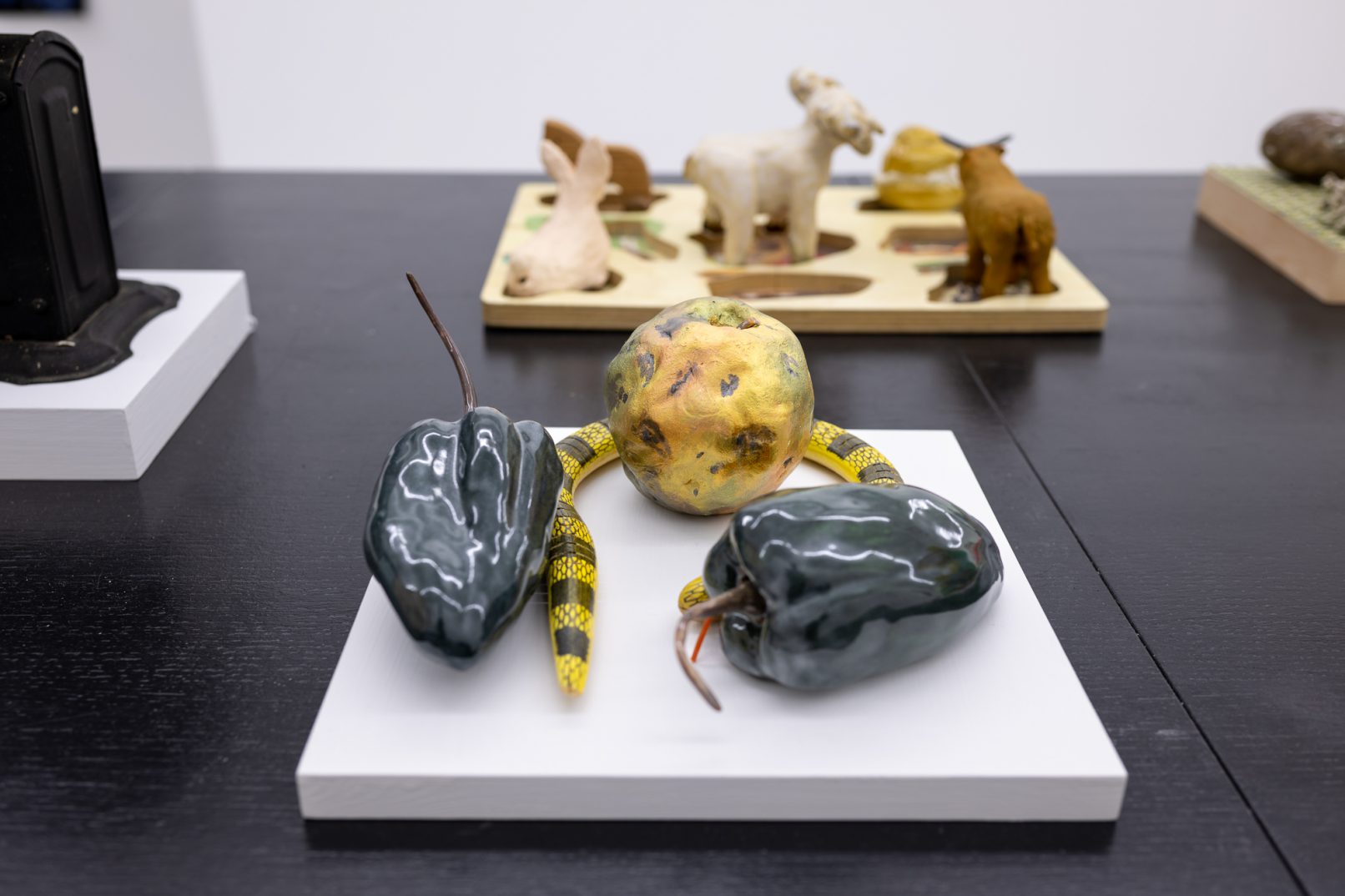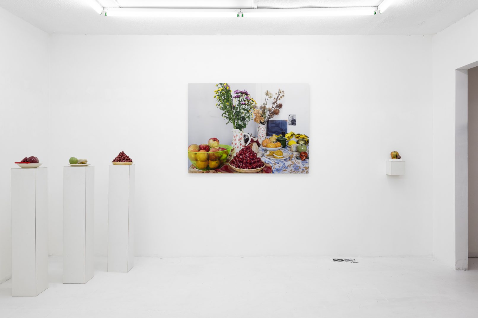 “My practice from 1961 to 2023 – 63 years – has involved a broad palette of materials and forms. In this present exhibition I was interested in using a painting genre – still life or nature morte – but making objects in ceramics along with found things, and presenting them in still life as photographs. They involved research, combining historical information, drawing on famous still life paintings by European artists of the 17th century, as well as by the modern painters, such as Paul Cézanne, but reflecting the realities of contemporary art and the present historical moment. Holbein’s Renaissance painting, The Ambassadors, a portrait of two men within a still life painting who were reputed to be lovers or “married”, carries a number of secrets and messages within the assemblage of objects. Cézanne and Morandi kept a collection of pottery, skulls, small sculptures, furniture, and other objects as “props” that they used repeatedly in their still life paintings, providing a physical vocabulary to construct narratives. I liked this as an exploration of techne in contemporary life by creating, in addition to the photographs, small still life using the same “props” or objects. I have worked on this project, that was supported by a Canada Council grant, for almost three years now.”