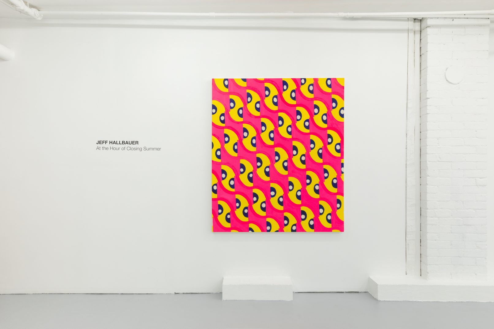 WAAP is pleased to present an exhibition of new paintings by JEFF HALLBAUER. Hallbauer’s new works are like variations on a theme. The patternistic paintings are based on specific portraiture source material; by defamiliarizing them and emphasizing their material presence – a vivid dot, a line, a swoop, an evocative plane of colour – and by placing these elements up against each other, the paintings are evocative of similar experiments in the deconstructing and parsing of language in modernist poetry.