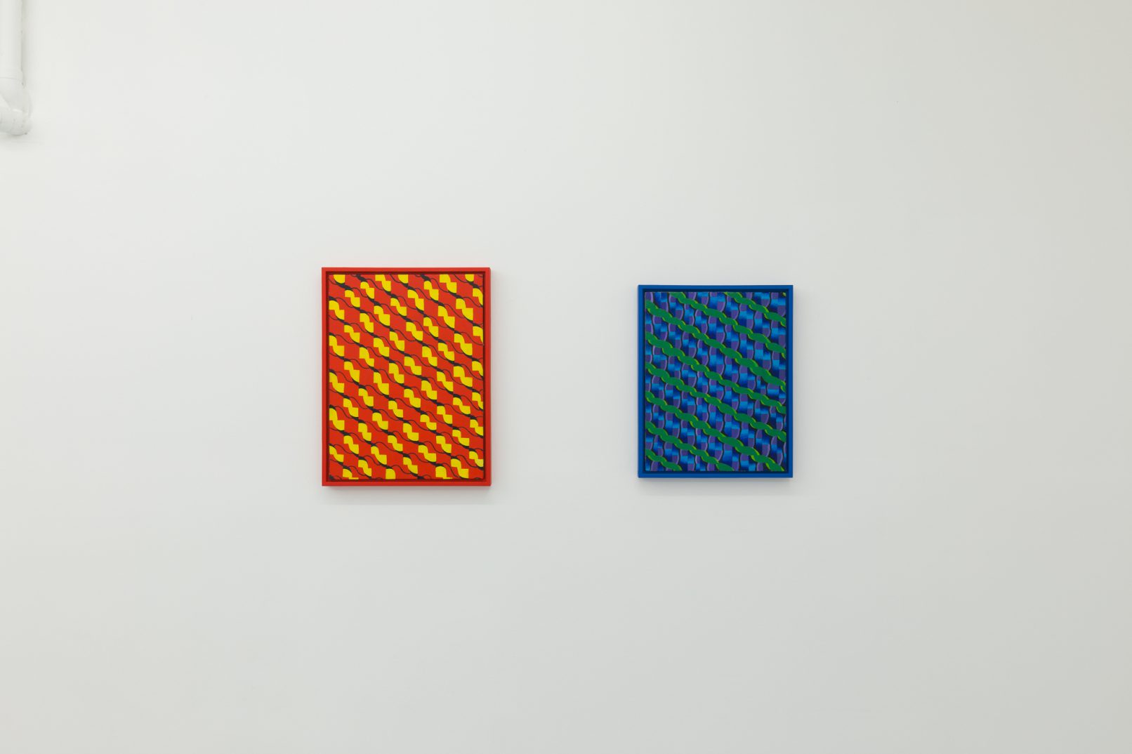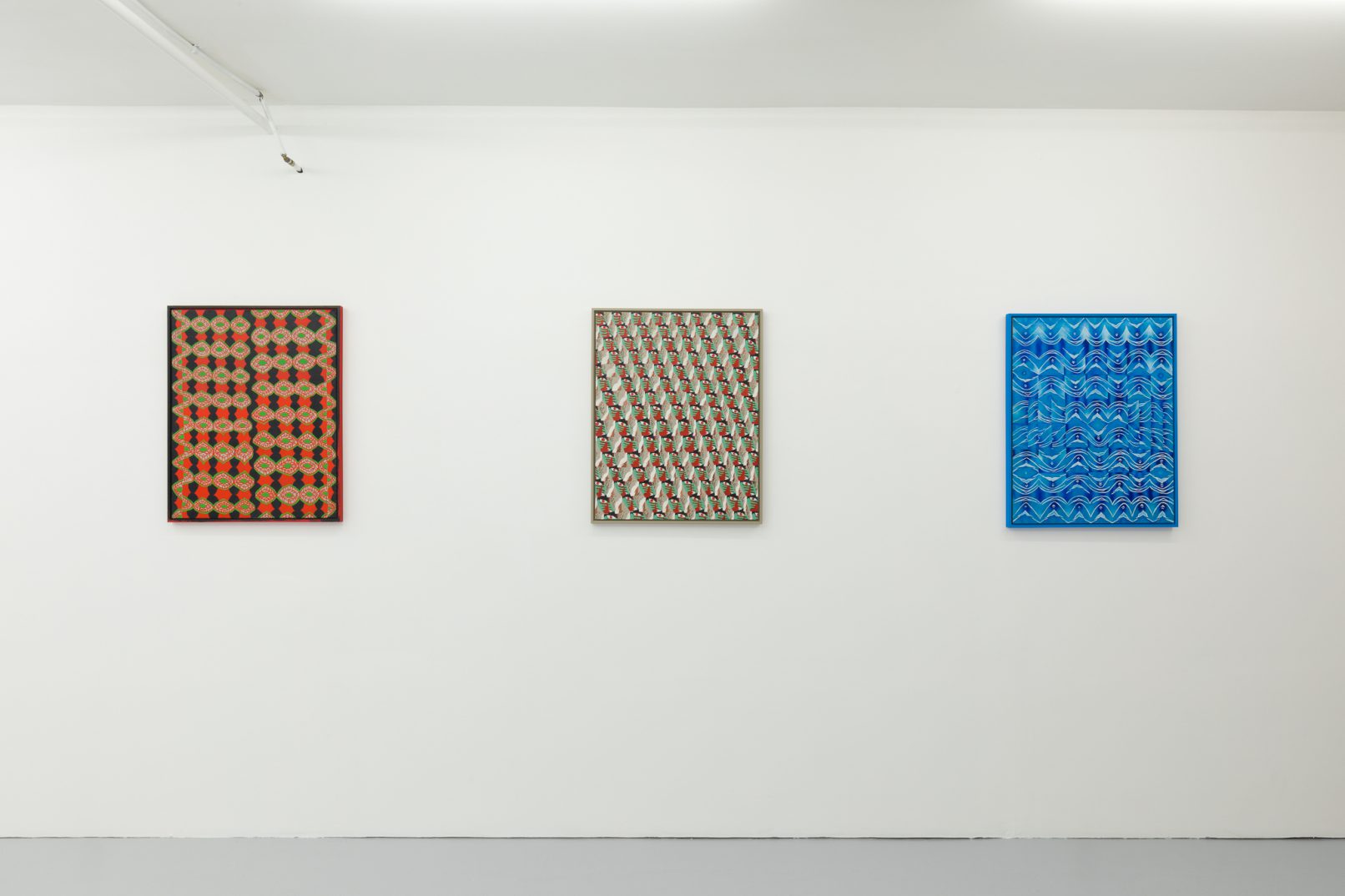 The paintings reveal the patterns of rhythm and syntactical structure that can emerge in paintings. By constantly inflecting and estranging the composition, the glimpse the artist is providing of the original portrait sources can often feel uroboric, spiralling into itself. The paintings, with their fragments of identities becoming unfixed, can feel like an apt metaphor for the complexity of contemporary identity. That the repetitions are ordered and bound up speaks to the sense we make of the world by articulation. These abstract compositions confront our temptation to extract specific meaning from which the painting is situated.