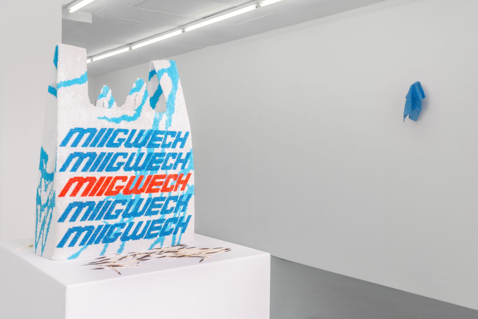 An Ojibwe artist from Aamjiwnaang First Nation, Nico Williams works with materials like delicas—Japanese glass seed beads—and Indigenous porcupine quills to create geometric beadwork sculptures that revivify living traditions. In his most recent body of work, Williams mimetically reproduces a range of commercial objects that are tied to youth culture, including Zig-Zag rolling papers and scratch lottery tickets—items one might pick up at their local depanneur in Montréal, where Williams now lives. The artist renders a range of disposable materials through the meticulous, hand-made process and tradition of beading: in doing so, he rejects disparaging colonialist and racist narratives that circulate about Indigenous cultures, imbuing these with symbols of status and the integrity of everyday life. The works are almost uncanny in their resemblance to the original, quotidian objects they replicate, the glass beads bringing a roundness and warmth of presence to the objects that expands out and beyond “vice.”