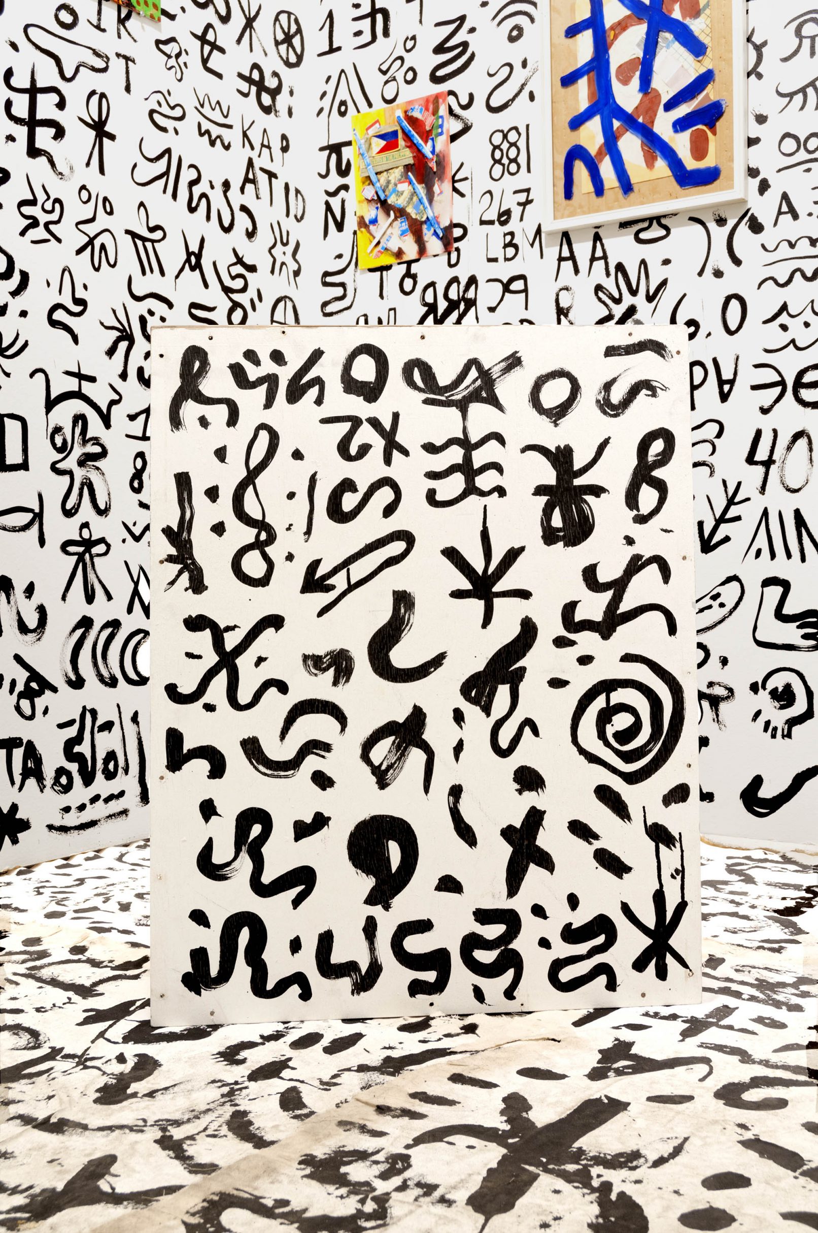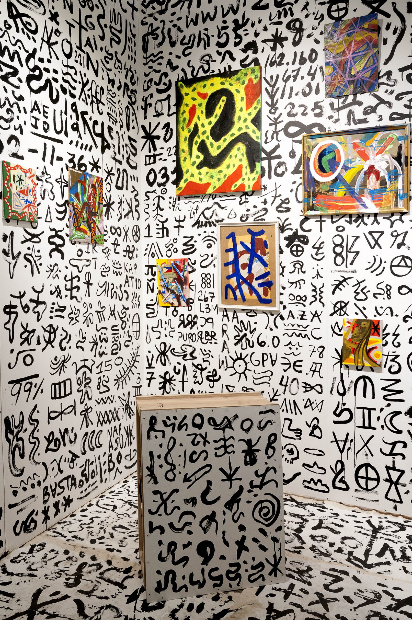 There’s nothing in Cruz’s installations that overtly signals a connection to a Filipino nationalistic history, rather as with the expansive topology of Cruz’s work, each individual part labours to produce a matrix of representative systems in an unspecific undercurrent of political asymmetry. Each canvas features a visceral surface of vibrating paint with motifs reminiscent of art that has historically been described as abstract primitivism.