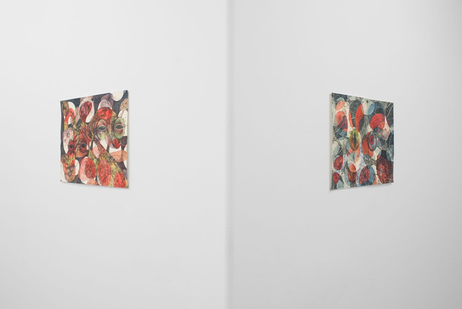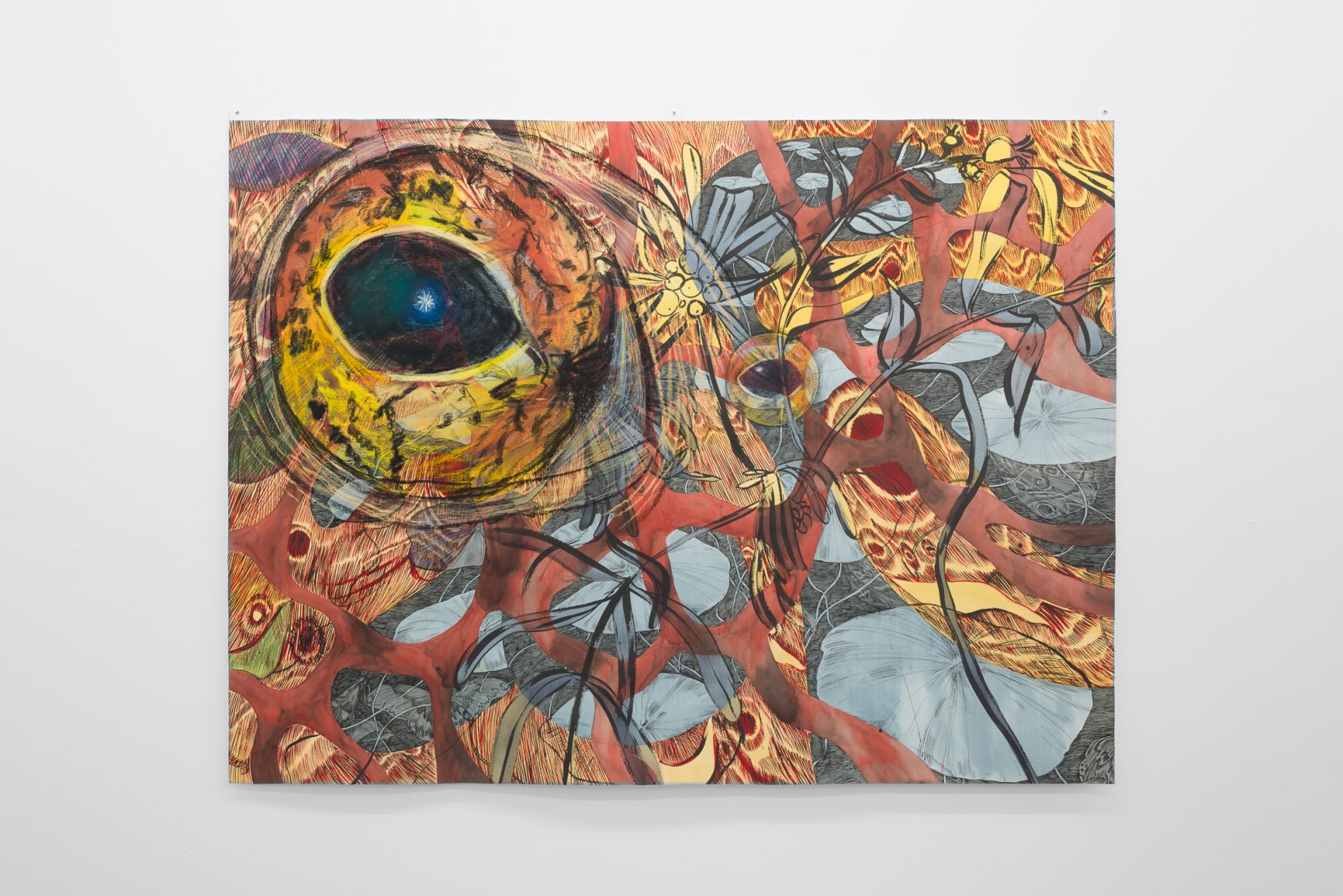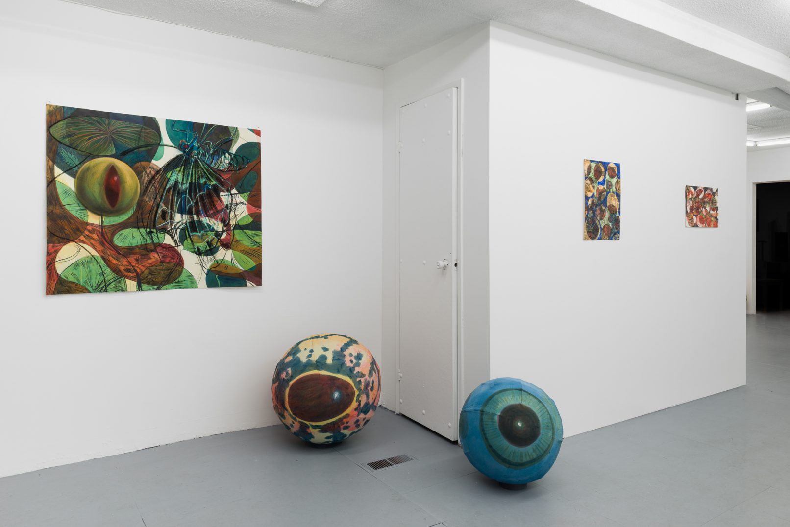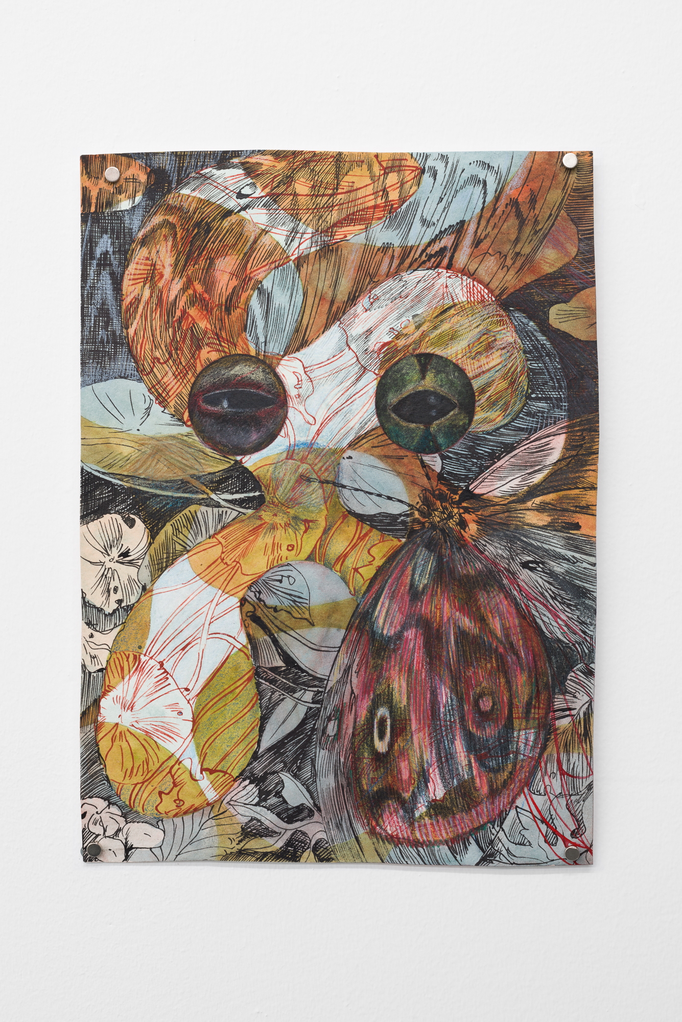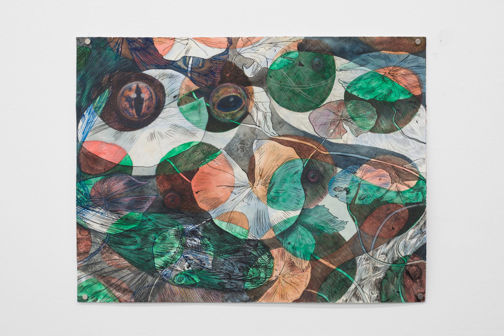 In Swamp Sight, Davidson weaves a world of uncanny connections around the act of looking. Frog, moth, and human eyeballs all appear to regard the viewer and each other. Drawn partly from observation, these works depart from natural history illustration to swim towards a strange new form of camouflage. A question floats among the forms: who’s seeing who, and how?
