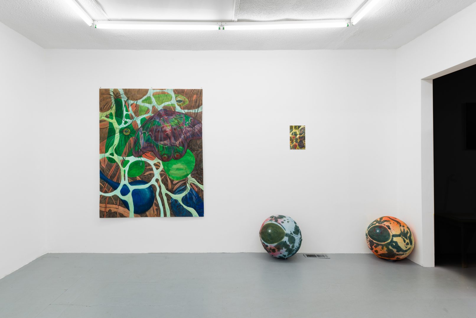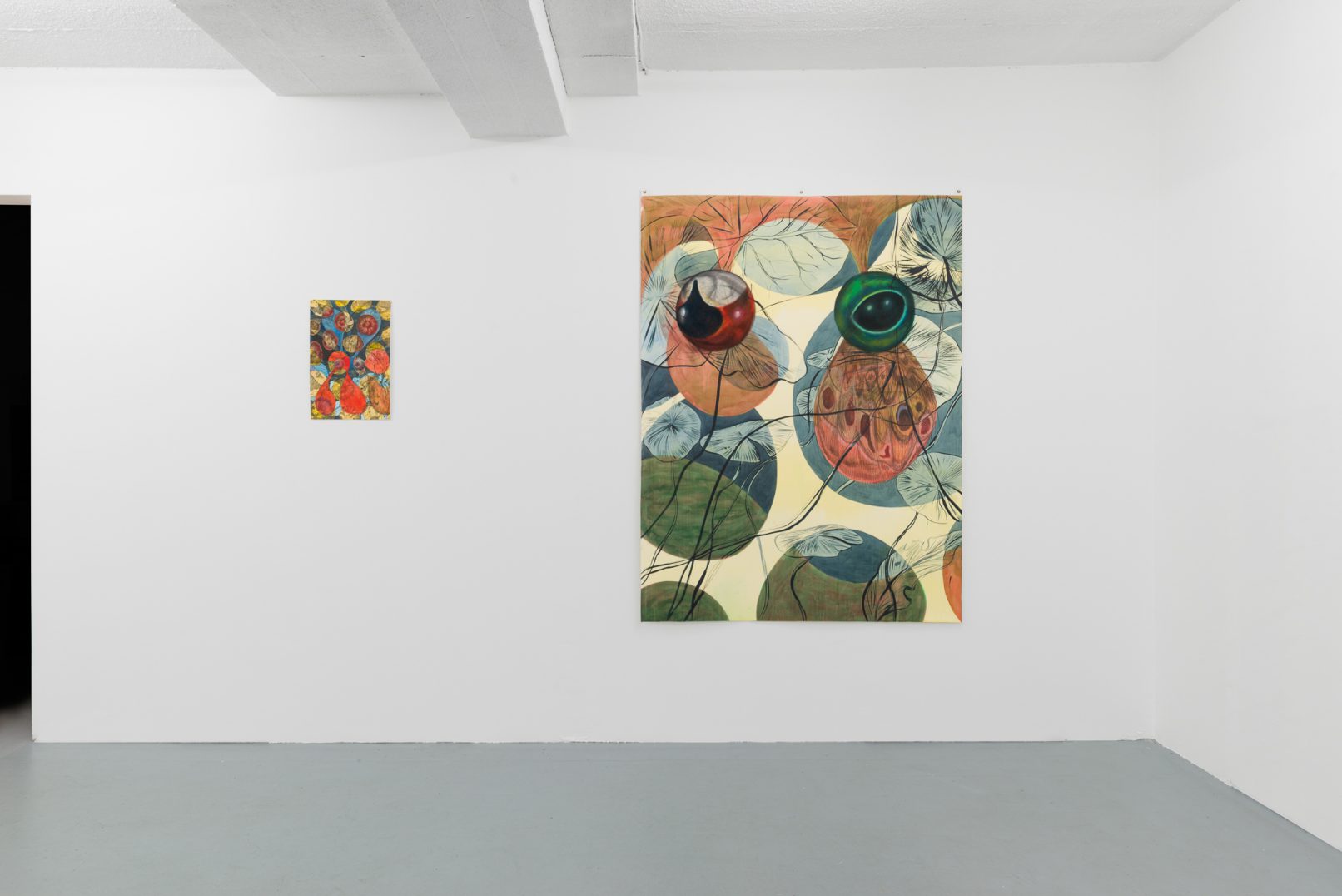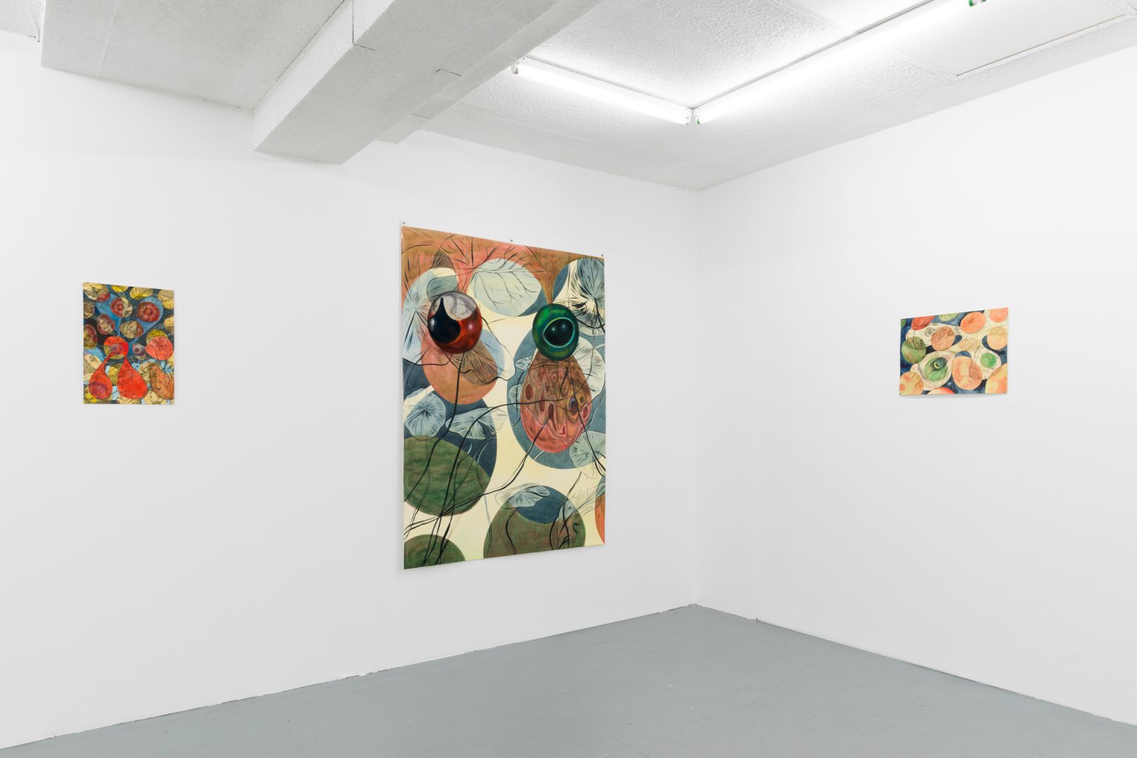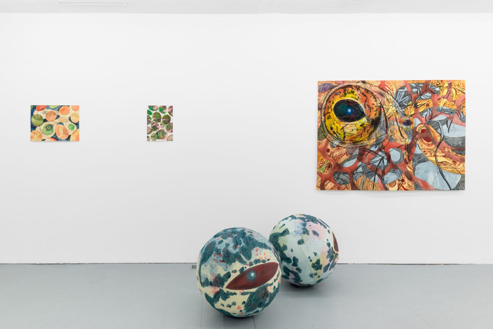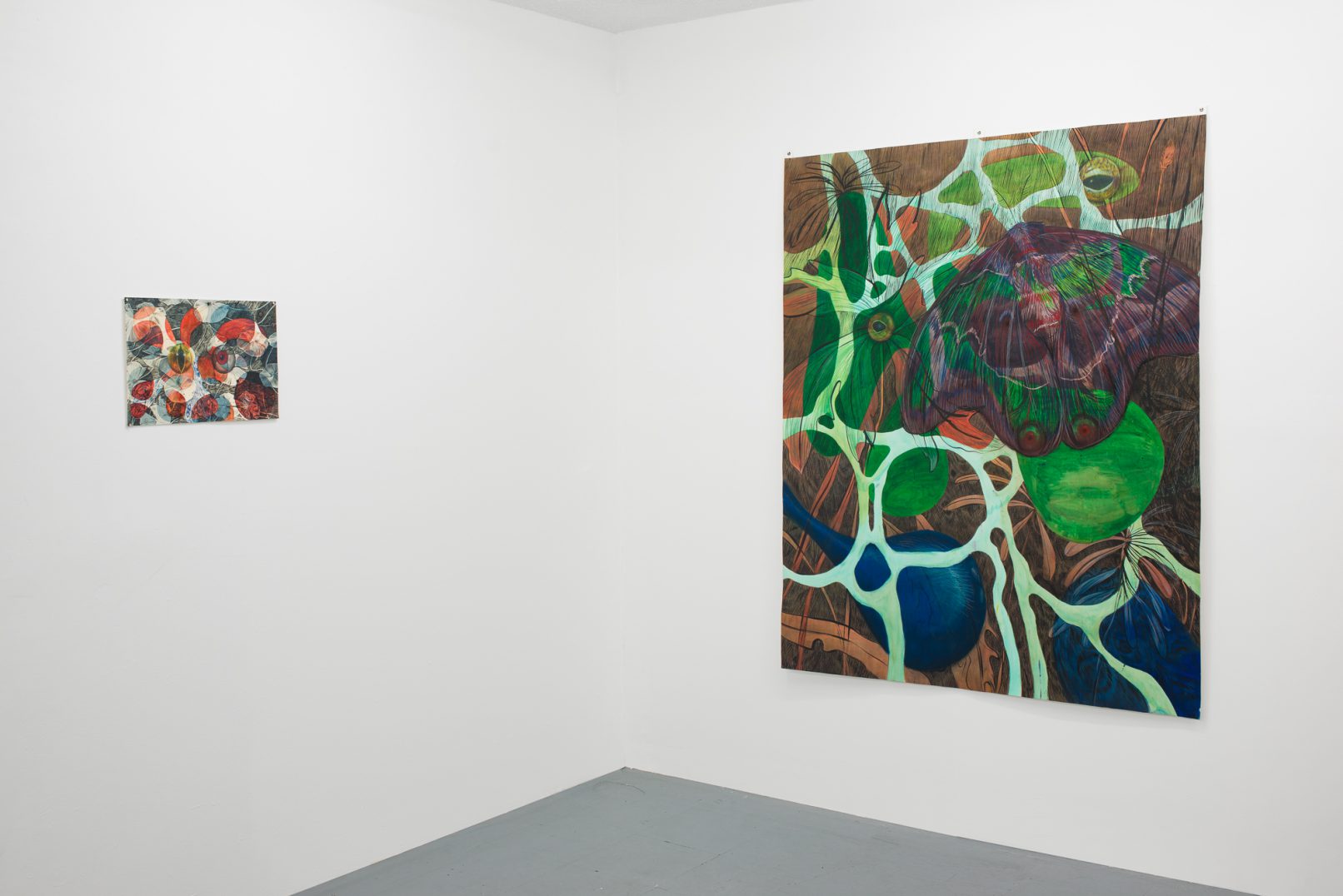 In Swamp Sight, Davidson weaves a world of uncanny connections around the act of looking. Frog, moth, and human eyeballs all appear to regard the viewer and each other. Drawn partly from observation, these works depart from natural history illustration to swim towards a strange new form of camouflage. A question floats among the forms: who’s seeing who, and how?