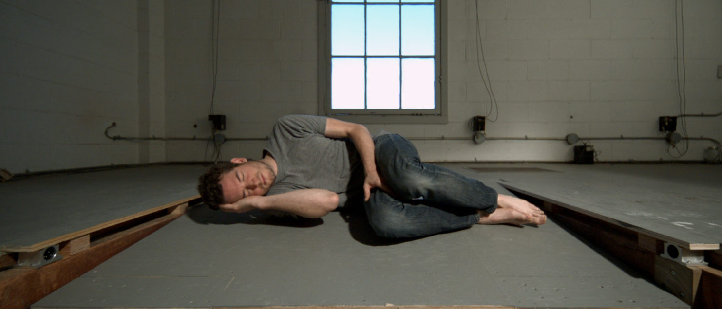 A Risky Jump started with artist Scott Billings in a fetal position as if asleep. He then fell through a trap door in ultra slow motion to a crash pad 3.9 metres below. A fall that should have taken less than a second was stretched to about five minutes. I loved watching Billings’s body becoming intensely expressive as he reacted to the shock of gravity.