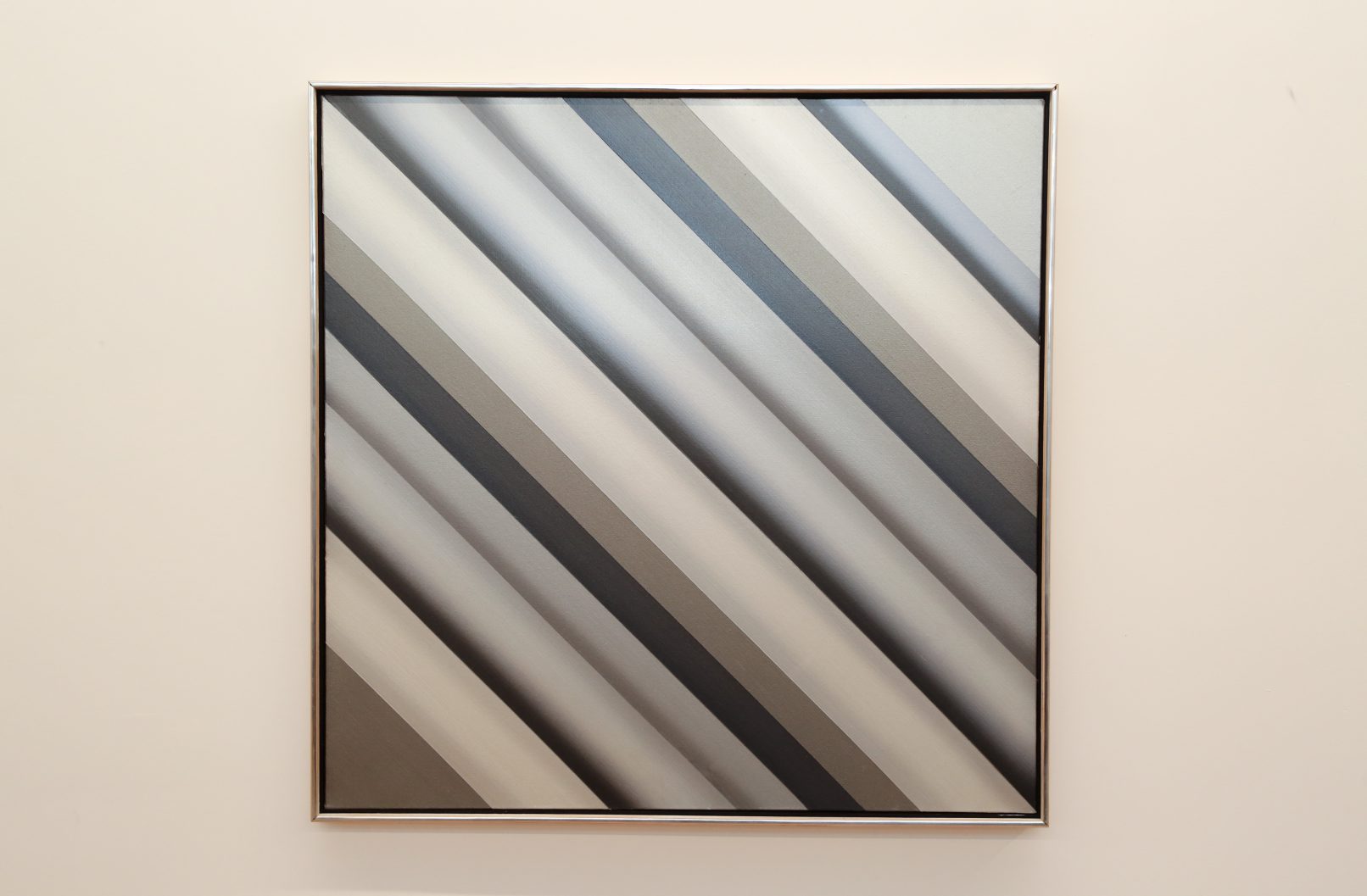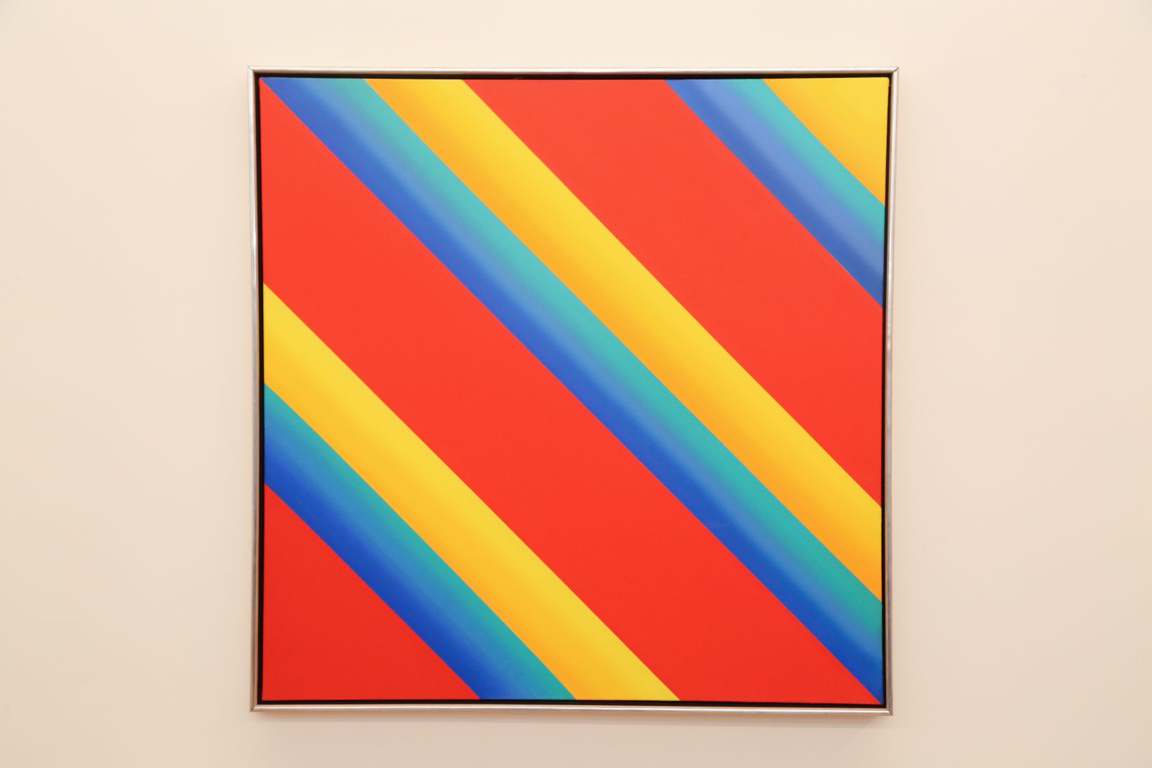 Joan Balzar (1928-2016) is recognized as a key figure in the development of abstract painting on the West Coast in the 1960s, a time when Vancouver emerged as a city of increased energy and experimentation in visual art. A graduate of the Vancouver School of Art, Balzar adopted a vocabulary of large-scale, optical, Hard-edge paintings, often including a neon element. These Op Art paintings were meant to create excitement in the retina. There is a connection to the 1960s interest in new electronic communications media as exemplified by the ideas of Marshall McLuhan. — The Helen and Morris Belkin Art Gallery