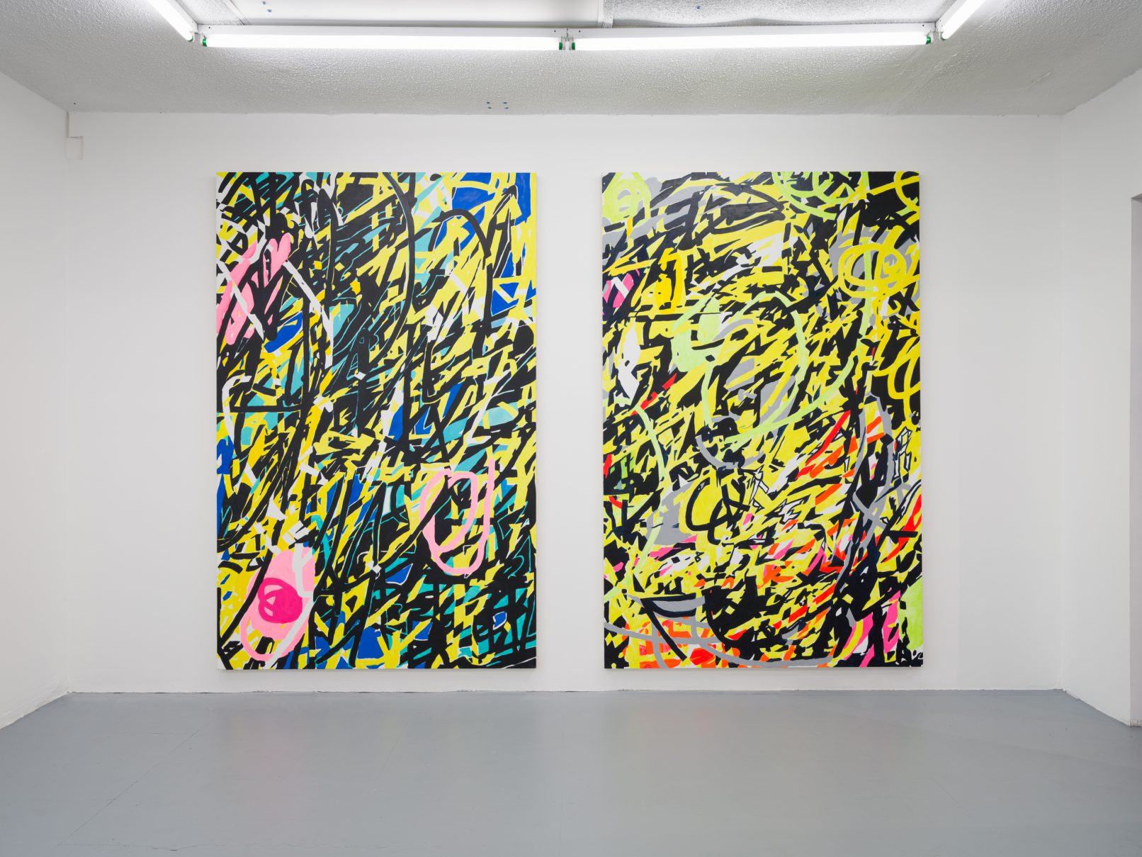 Bumblebee and Ducky features sculptures by Barry Doupé and paintings by Jeff Hallbauer that lean into liberating artistic strategies – relying on intuition and the artists’ own affective responses to material, colour, and form. While perhaps appearing absurdist in both disjointed arrangements and unusual palettes, Bumblebee and Ducky forecasts a reliance on strong primal instincts.