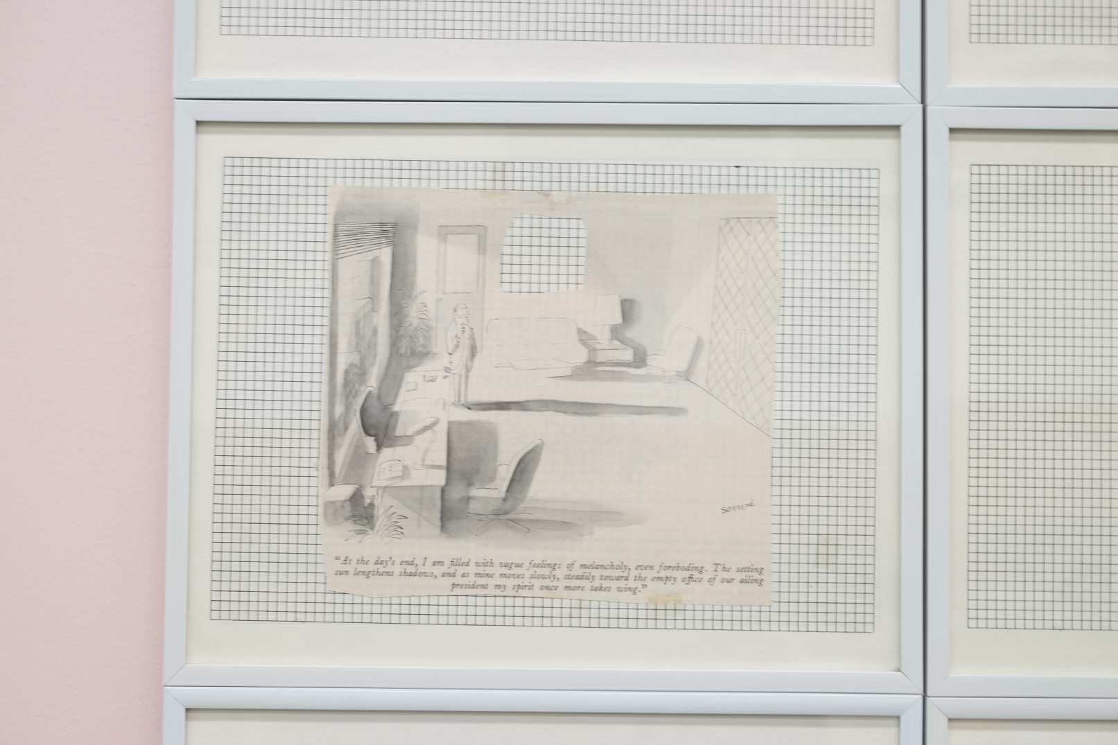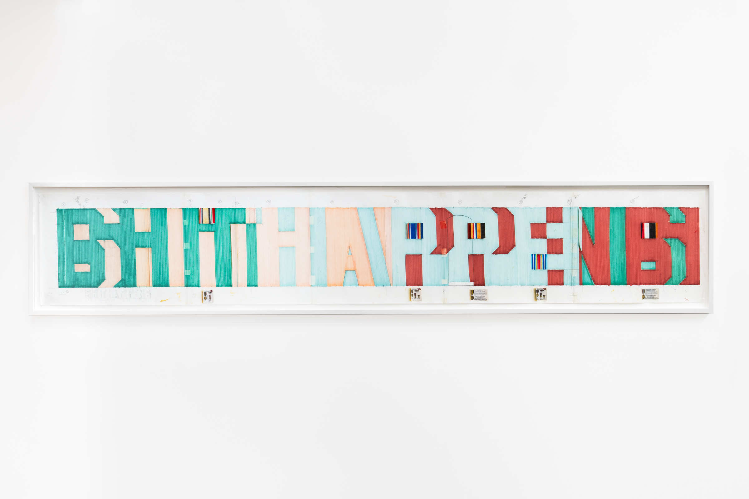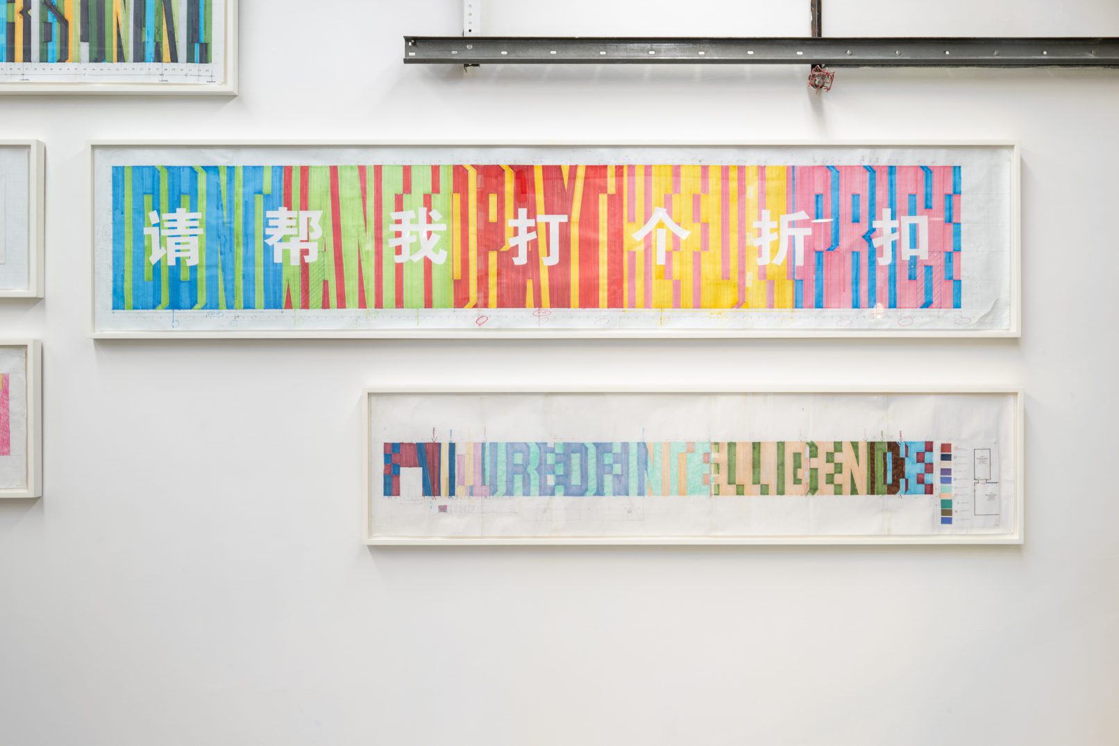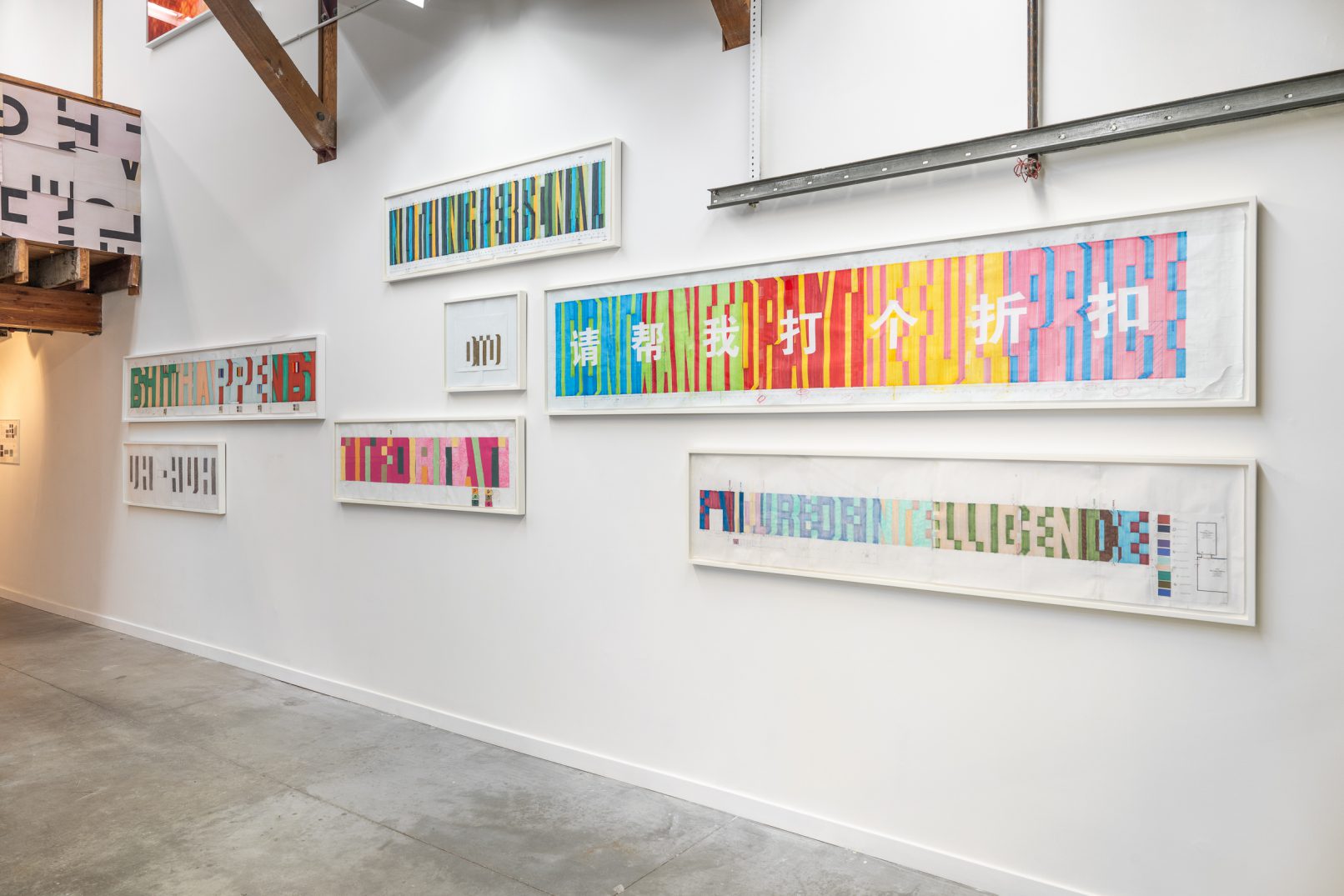 This exhibition titled UH-HUH/SORRY, work of Cathy Busby and Garry Neill Kennedy, includes a selection of prints from Busby’s SORRY series (2005-2014) and Kennedy’s SEIZED suite of prints (1991); as well as a host of WORKING DRAWINGS mapping Kennedy’s large wall-text paintings of the 1990s to 2000s, including UH-HUH (S.L. Simpson Gallery, Toronto, 1992), and I DON’T WANT TO PAY THE FULL PRICE (Centre A, Vancouver, 2008). Busby’s ATRIUM prints (2010) question art gallery display practices and were developed during her artist-residency project at the Art Gallery of Nova Scotia. This dynamic installation at Wil Aballe includes WE ARE SORRY fragments, and brings together the works alongside a selection of printed matter, highlighting the conceptual processes of this artist couple.