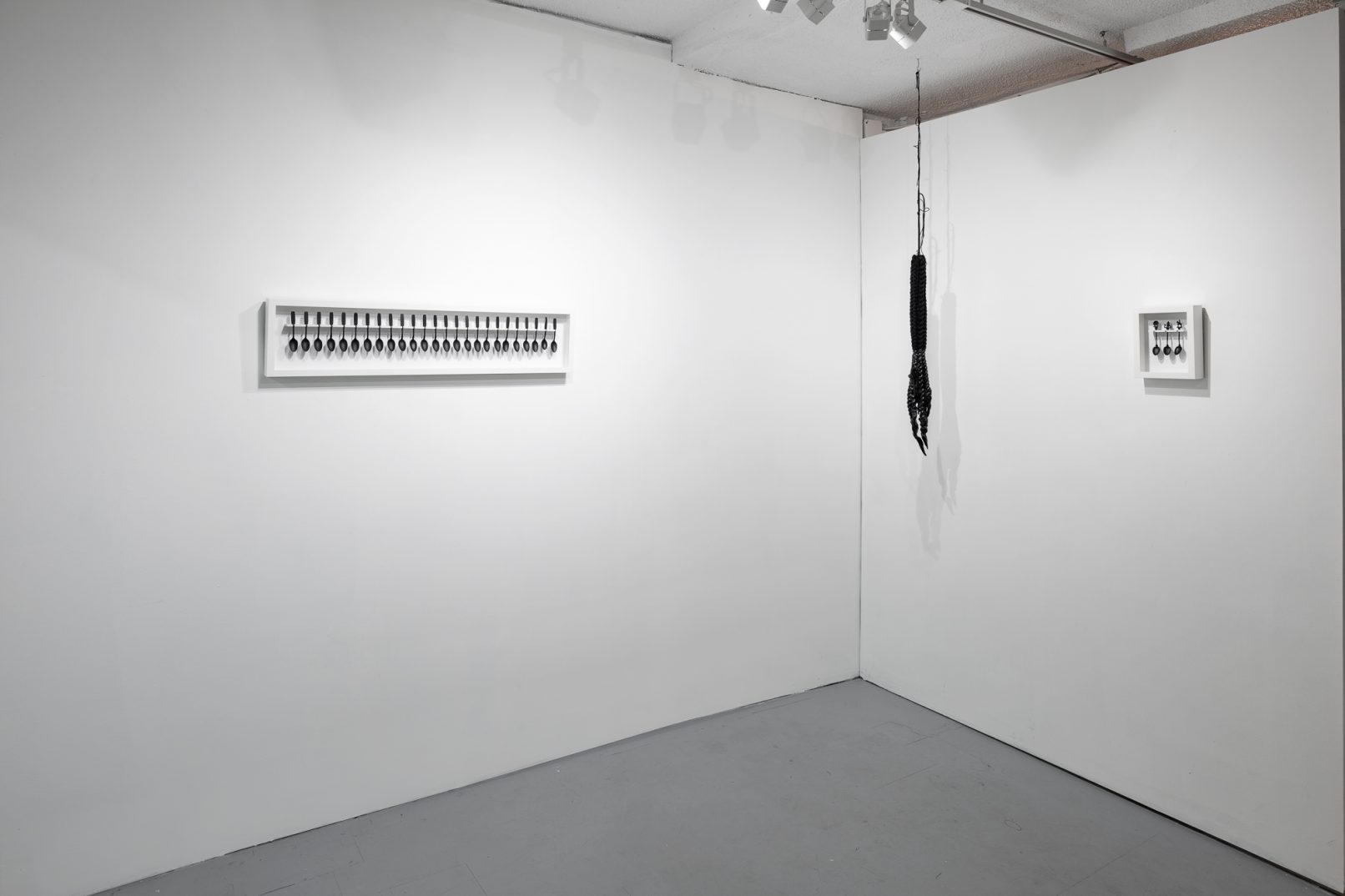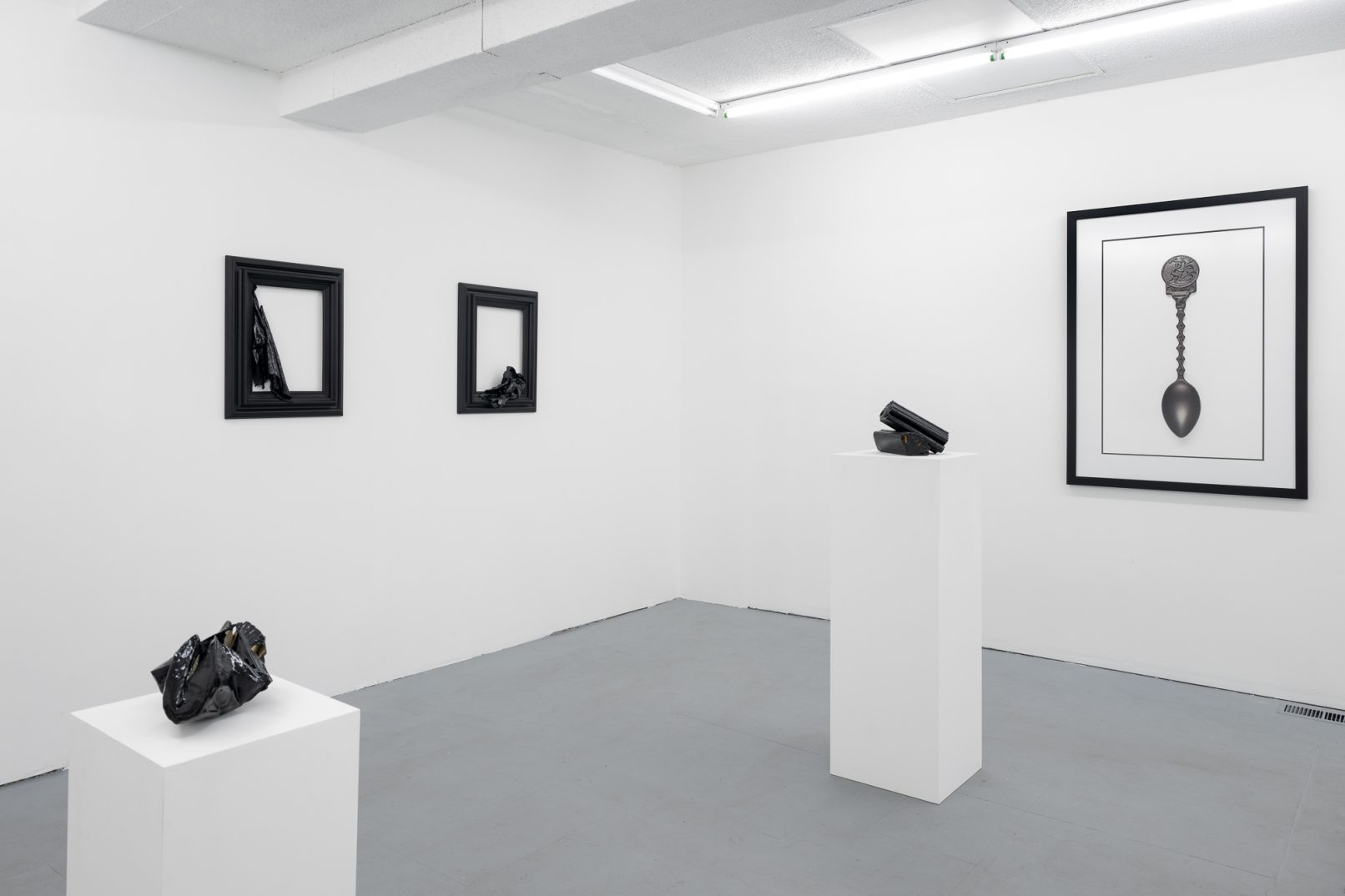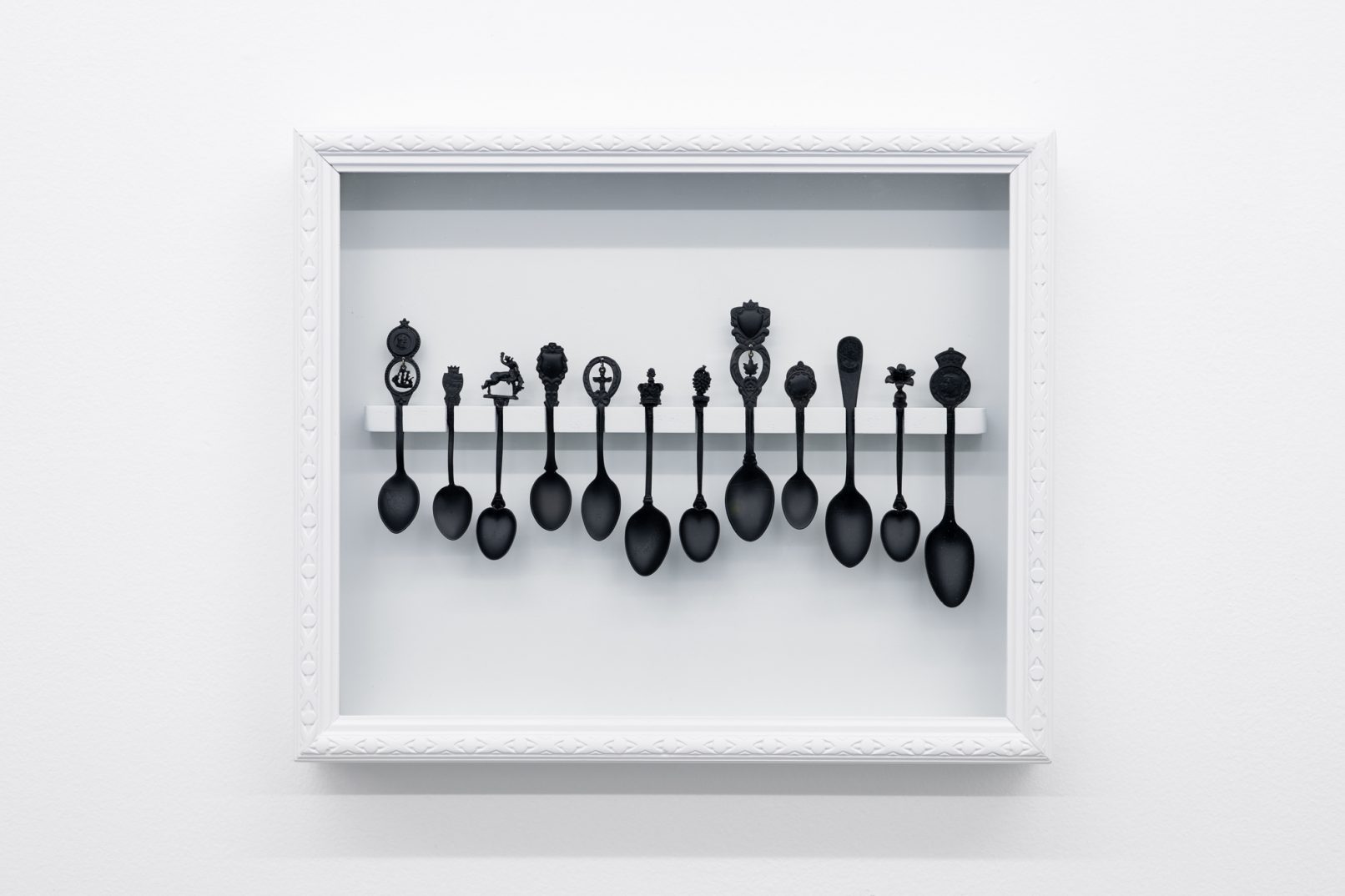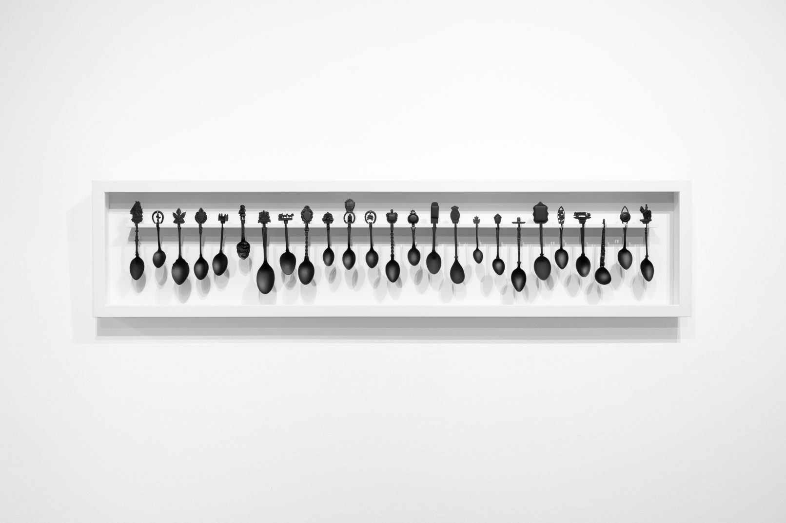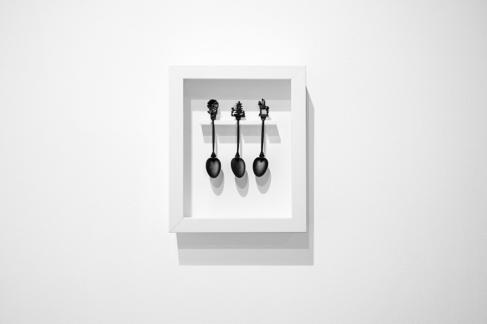 In un/titled, Chantal Gibson continues her work with black souvenir spoons, creating a series of portraits that speak to themes of gendered and generational (dis)connection, (dis)placement and re(dis)covery.