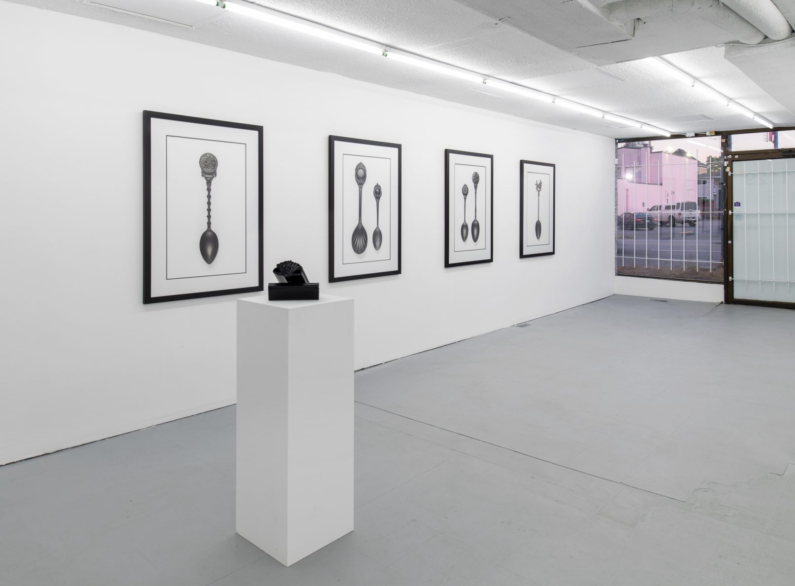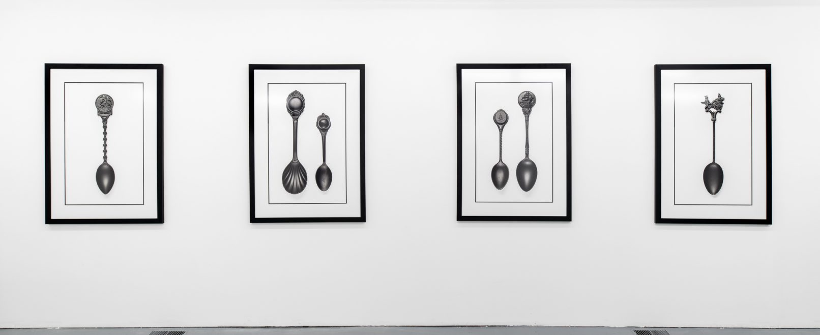 Playing with size, scale and perspective, Gibson transforms a small, vintage spoon into large photographs, revealing a sailing vessel big enough to wonder who’s inside? Each blackened ornament is a holder of memory, each body a portrait of a time, a place, a transaction.