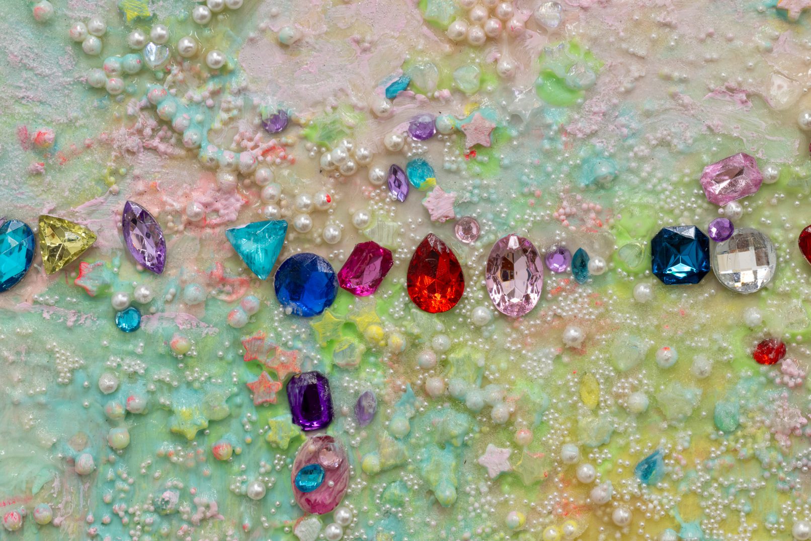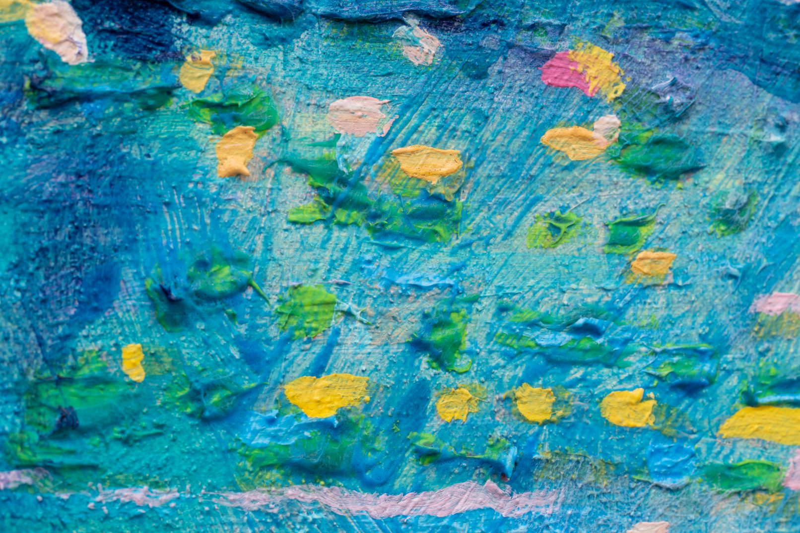 Bringing together works in acrylic, oil and mixed-media, the variety of techniques demonstrate an ongoing inquiry into the juncture of the sensual, formal, and environmental. Multiple works incorporate sand and other materials, in the quest for a vibrant surface. The use of internal subdivision and abutting passages refracts multiple places into the frame of each work while the palette, predominantly pastel with sections of deep blue and violet, conjures the uncertainty of dusk, when the world beckons through the window. Throughout Wind-Eye, wind-swept gestures caress and flow like garlands or fingers.