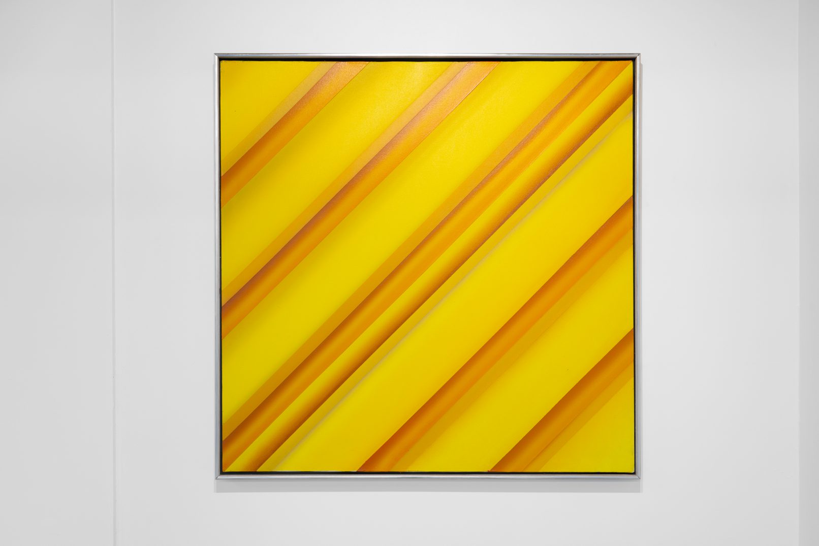 Joan Balzar had already been immersed in various aspects of science and engineering around 1960 – when she made the switch from abstract expressionist painting, to her signature hard edge-style. Her interest became even greater as the Soviet and American space programs developed and then culminated with the Apollo moon landing of 1969. Not coincidentally various manifestations of arc-forms emerged in Balzar’s work. With the emergence of hard-edge abstraction in the mid-1960s, a range of other quasi-orbital projects appeared, including orbital freeways around cities, the psychogeography of situationists and a plethora of ‘trip’ or orbit-related art forms especially as part of the vehicular wing of conceptual art practice. Those responses to what was seen drew on models from urban geography, philosophy and the scientific community. Balzar had no interest in the other form of 1960s ‘tripping’. What Balzar did seek was work that transmitted to the viewer something of the power of the cosmos and the power of paint. With the many X paintings Balzar merged language, typography, poetics and the power of painted letters into some of the strongest abstract work ever produced in Canada.