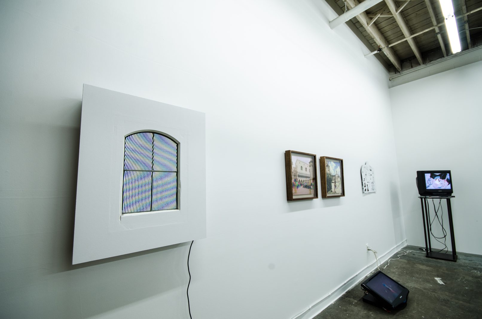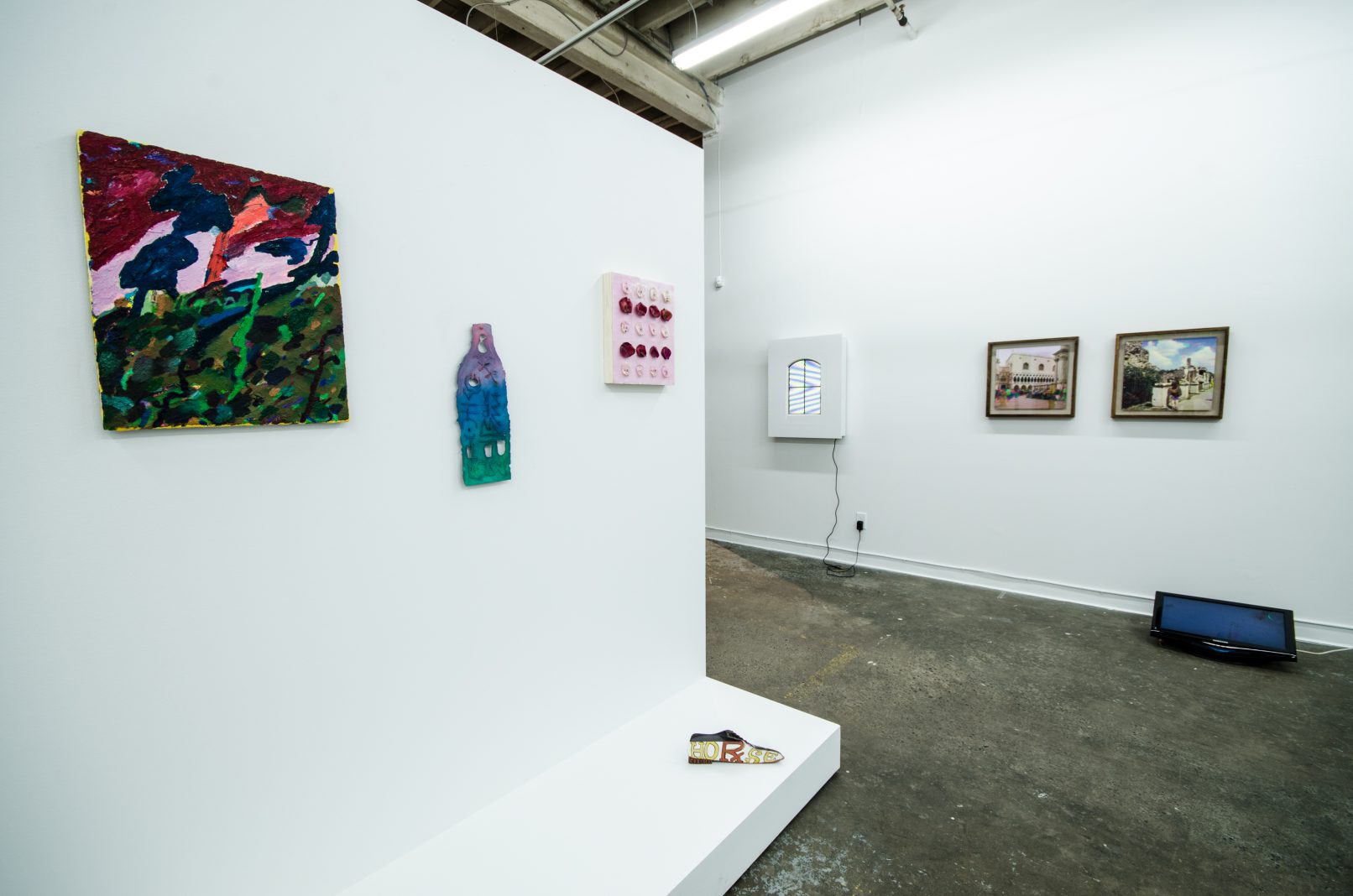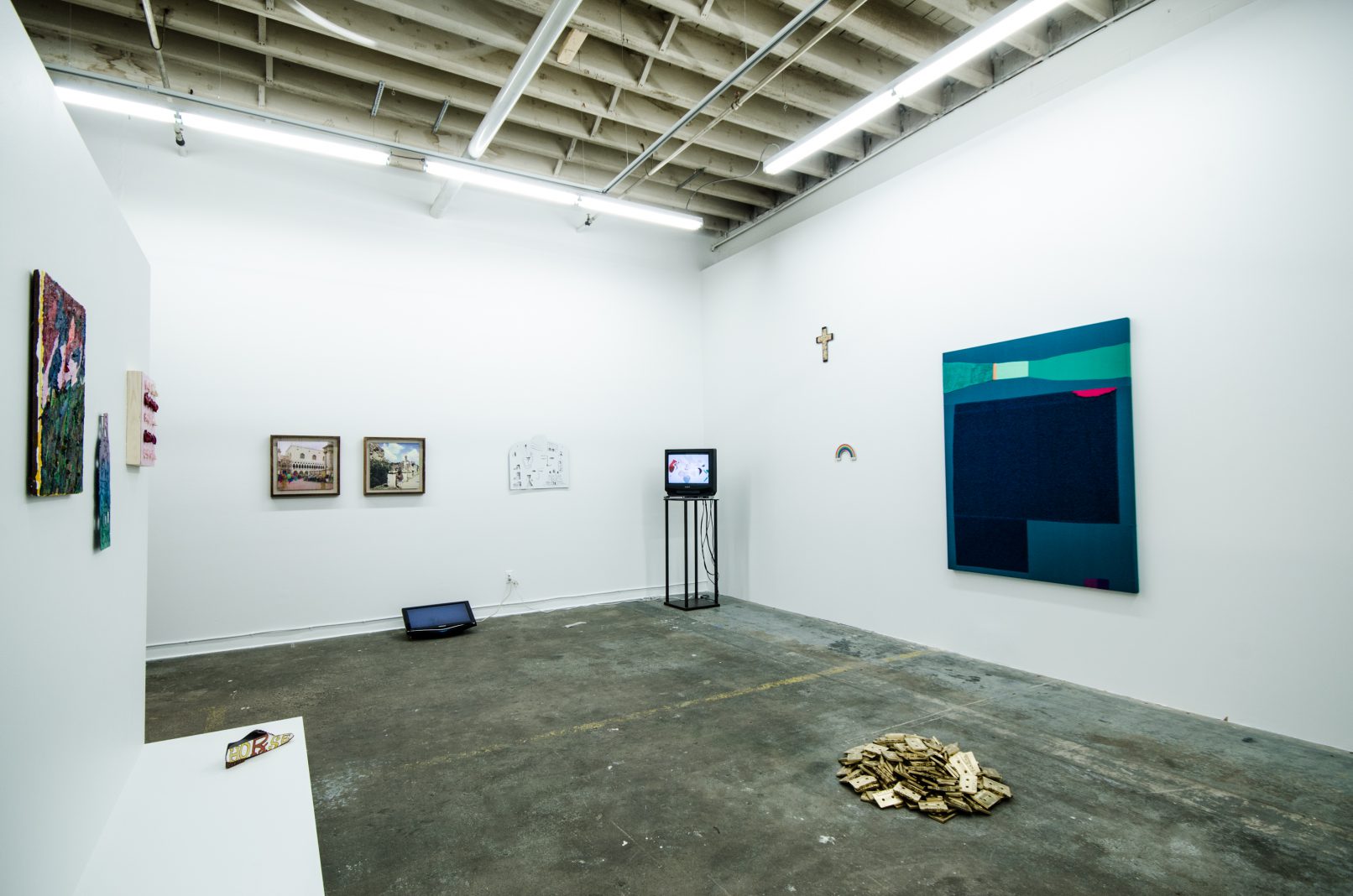 Indeed, in a physical and cultural landscape littered with things, perhaps an object’s imaginative charge is its most important quality. In SCOTT BILLINGS’ video work, this imaginative charge comes with a very physical jolt, while DANIEL KENT presents a meditation on technology that uses an ironic humour to convey its message. Likewise, DUSTIN BRONS’ witty homage to Bruce Nauman is as smart as it is hilarious. KIRSTEN STOLTMANN’s work literally overwrites magazine advertisements to sardonically articulate a wry feminist critique. Finally, NICOLAS SASSOON reinterprets his digital moire work as a site-specific sculpture. In doing so, he posits insightful questions about the role of the art object in relationship to digital space and internet culture.