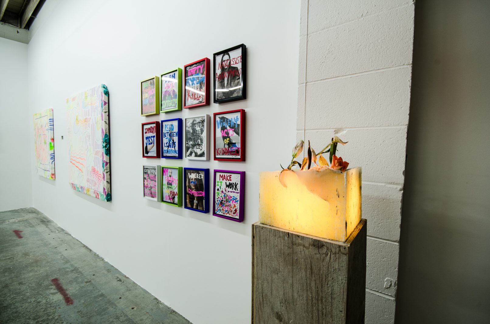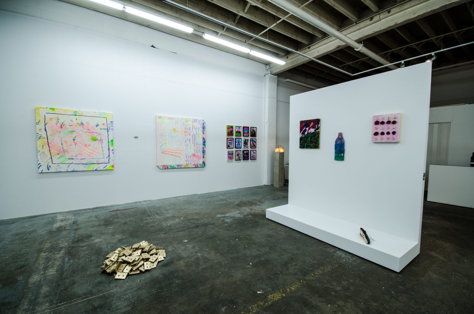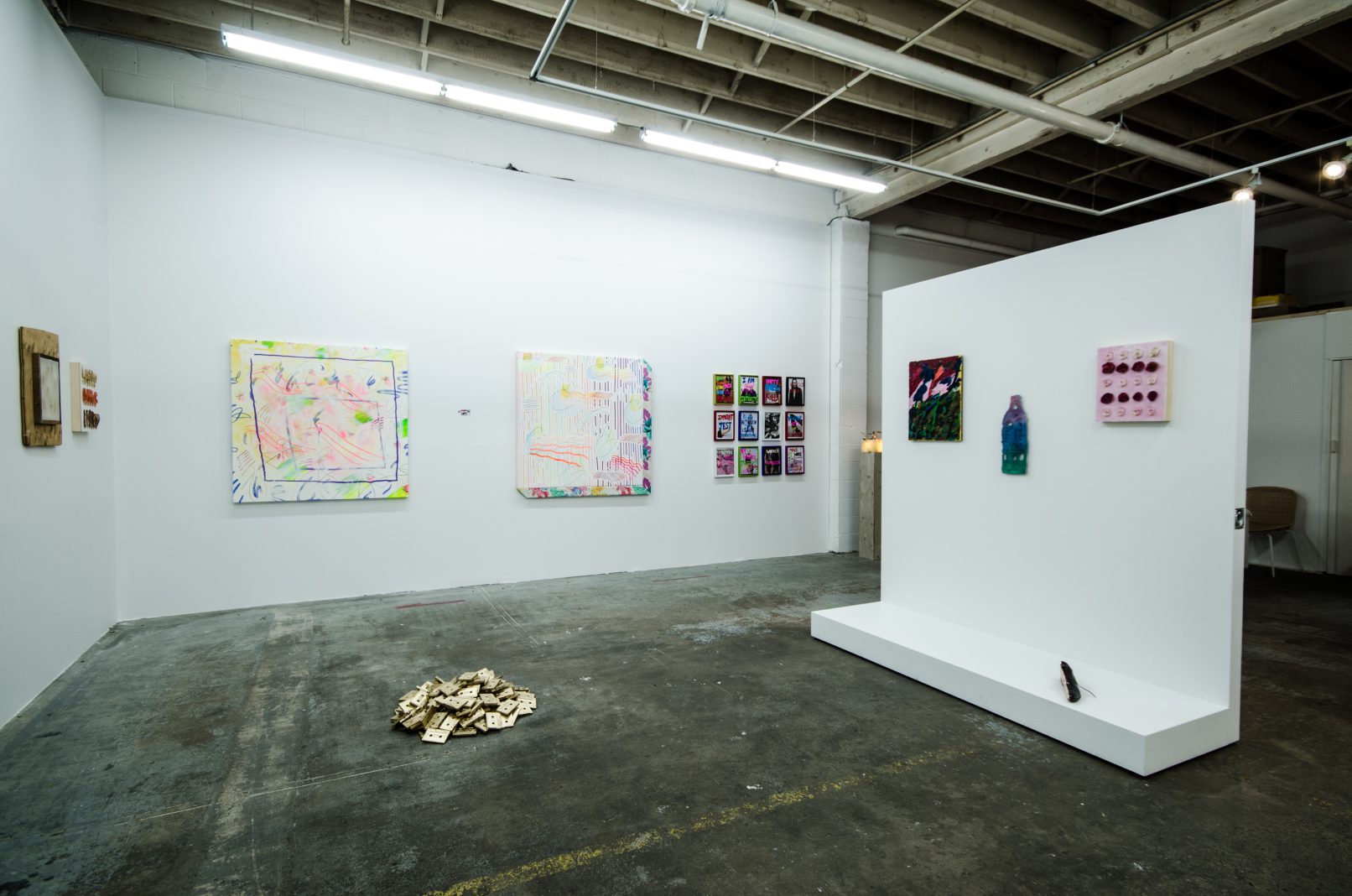 Indeed, in a physical and cultural landscape littered with things, perhaps an object’s imaginative charge is its most important quality. In SCOTT BILLINGS’ video work, this imaginative charge comes with a very physical jolt, while DANIEL KENT presents a meditation on technology that uses an ironic humour to convey its message. Likewise, DUSTIN BRONS’ witty homage to Bruce Nauman is as smart as it is hilarious. KIRSTEN STOLTMANN’s work literally overwrites magazine advertisements to sardonically articulate a wry feminist critique. Finally, NICOLAS SASSOON reinterprets his digital moire work as a site-specific sculpture. In doing so, he posits insightful questions about the role of the art object in relationship to digital space and internet culture.