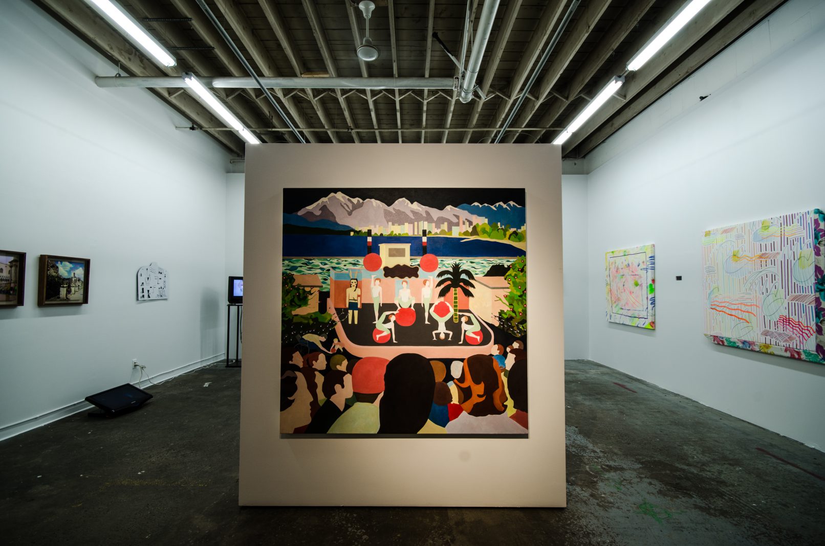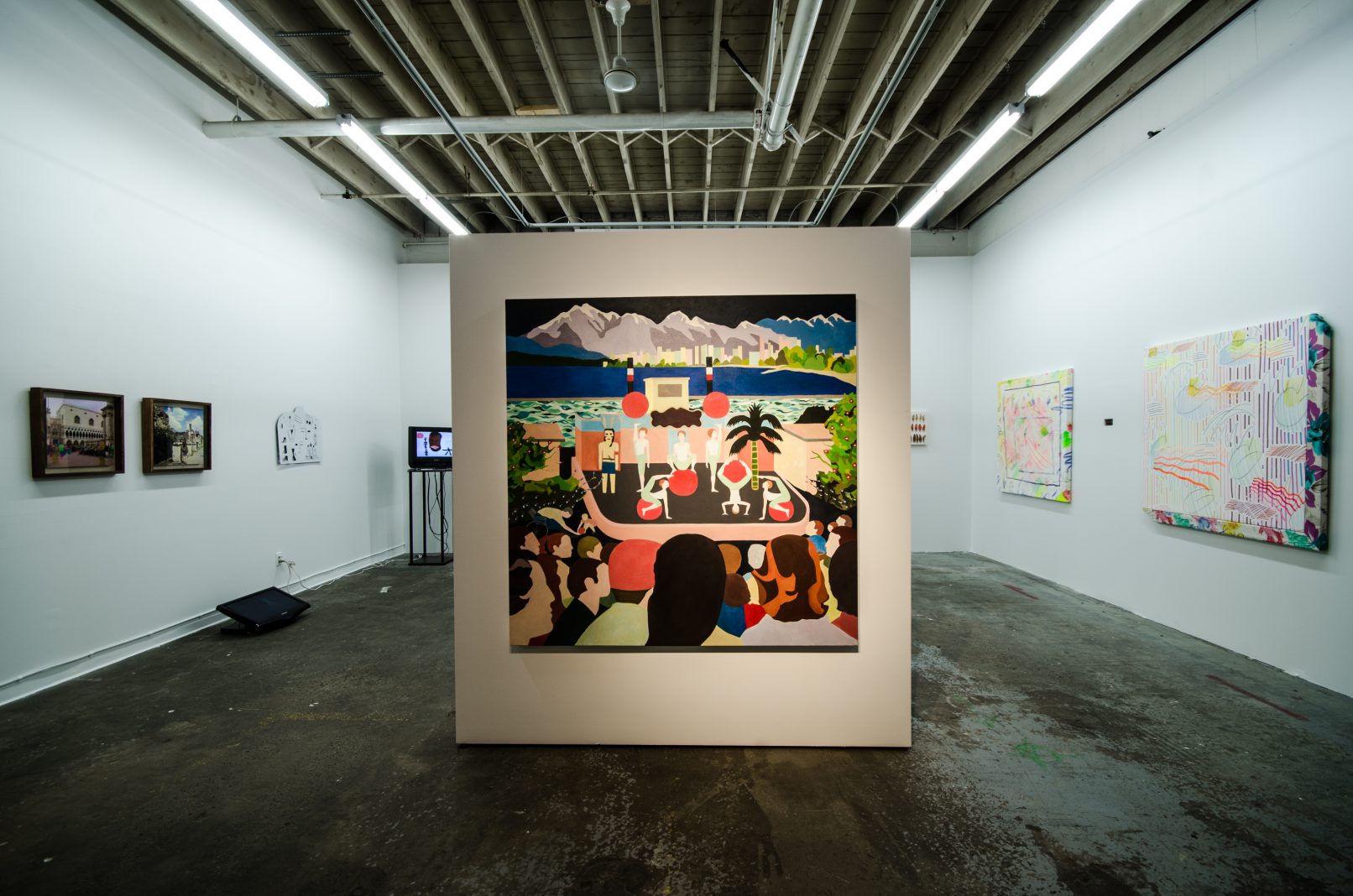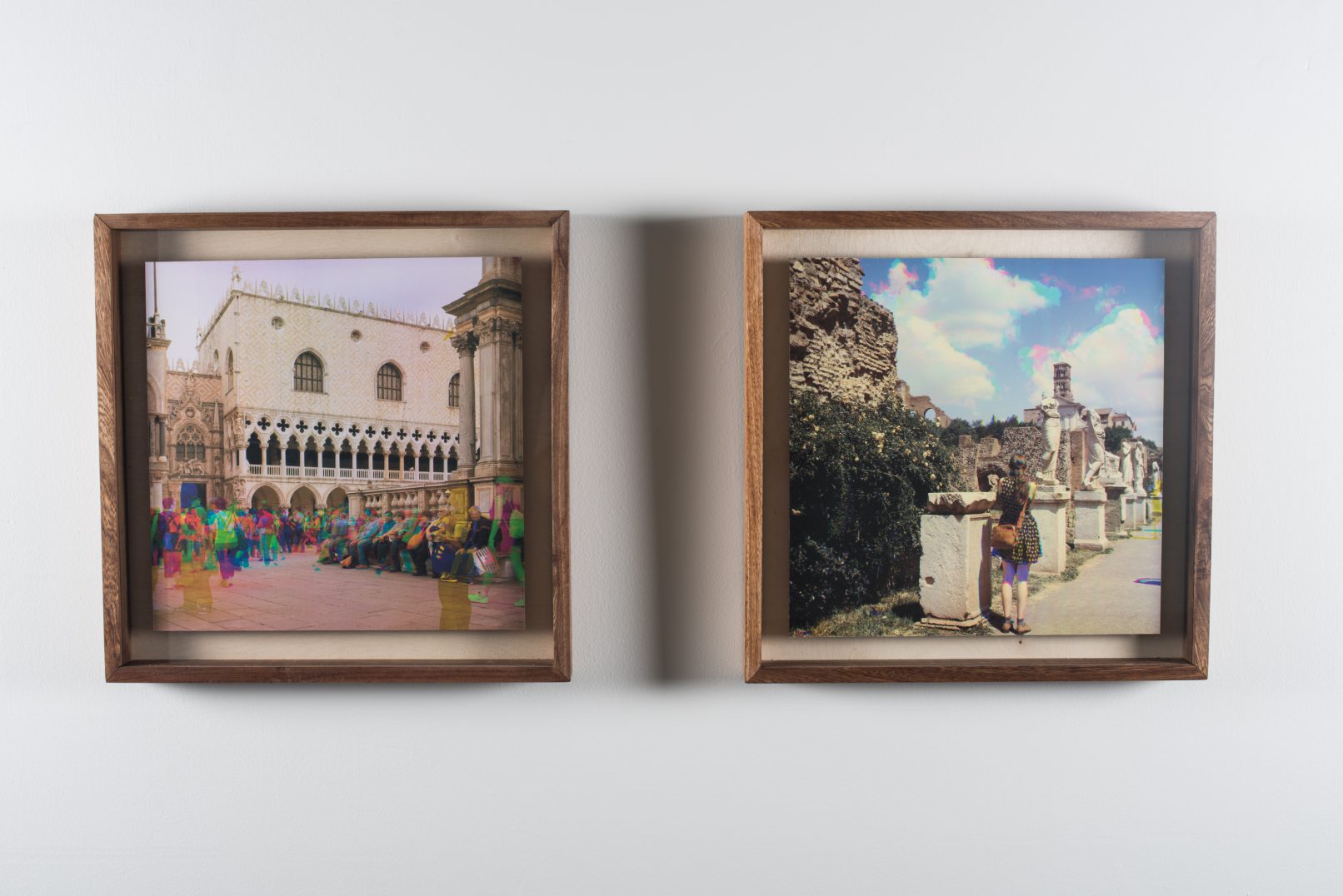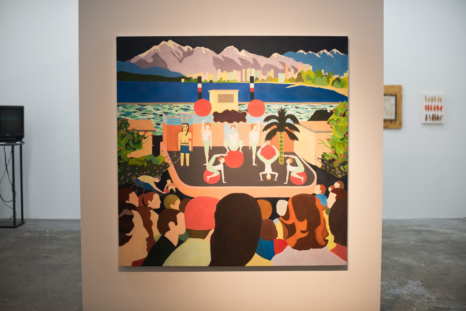 The works of MANUEL CORREA and NATASHA MCHARDY examine those endlessly traversed landscapes of leisure frequented by tourists. McHardy’s stylised, collage-like painting presents Vancouver’s seaside skyline as seen from Kits Beach – a familiar summer haunt for many – while Correa’s manipulated photographs are shot in some of Italy’s most popular sites. As vibrant and colourful as the crowded sites they show, these images call attention to the plurality of public spaces in the summertime, which can be both exhilarating and exhausting.