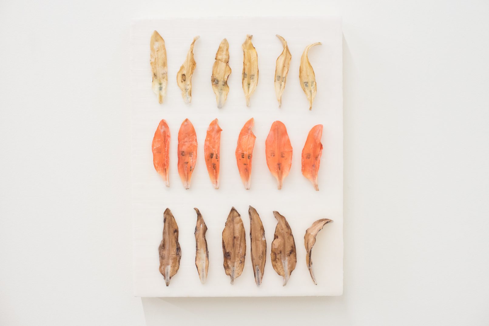 Well-known for helping to canonise the concept of post-internet in contemporary art, MARISA OLSON’s works often interrogate the mutability of technology. Rendering the idea of “media archaeology” as sculpture, Olson has reclaimed obsolete technologies and memorialised them as art. As a direct counterpoint, DANIEL JEFFERIES presents ink drawings on flower petals that will inevitably degrade over time; in this case, no amount of preparation or preservation can prevent this delicate ephemeral medium from eventually fading away.