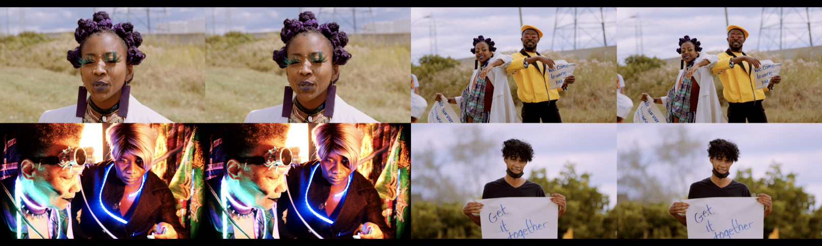 Image: SYRUS MARCUS WARE, Ancestors, Can You Read Us? (Dispatches from the Future), 2 stills, as presented at Toronto Biennale, Salah Bachir Media Wall, 2019, video, 3 min 15 sec